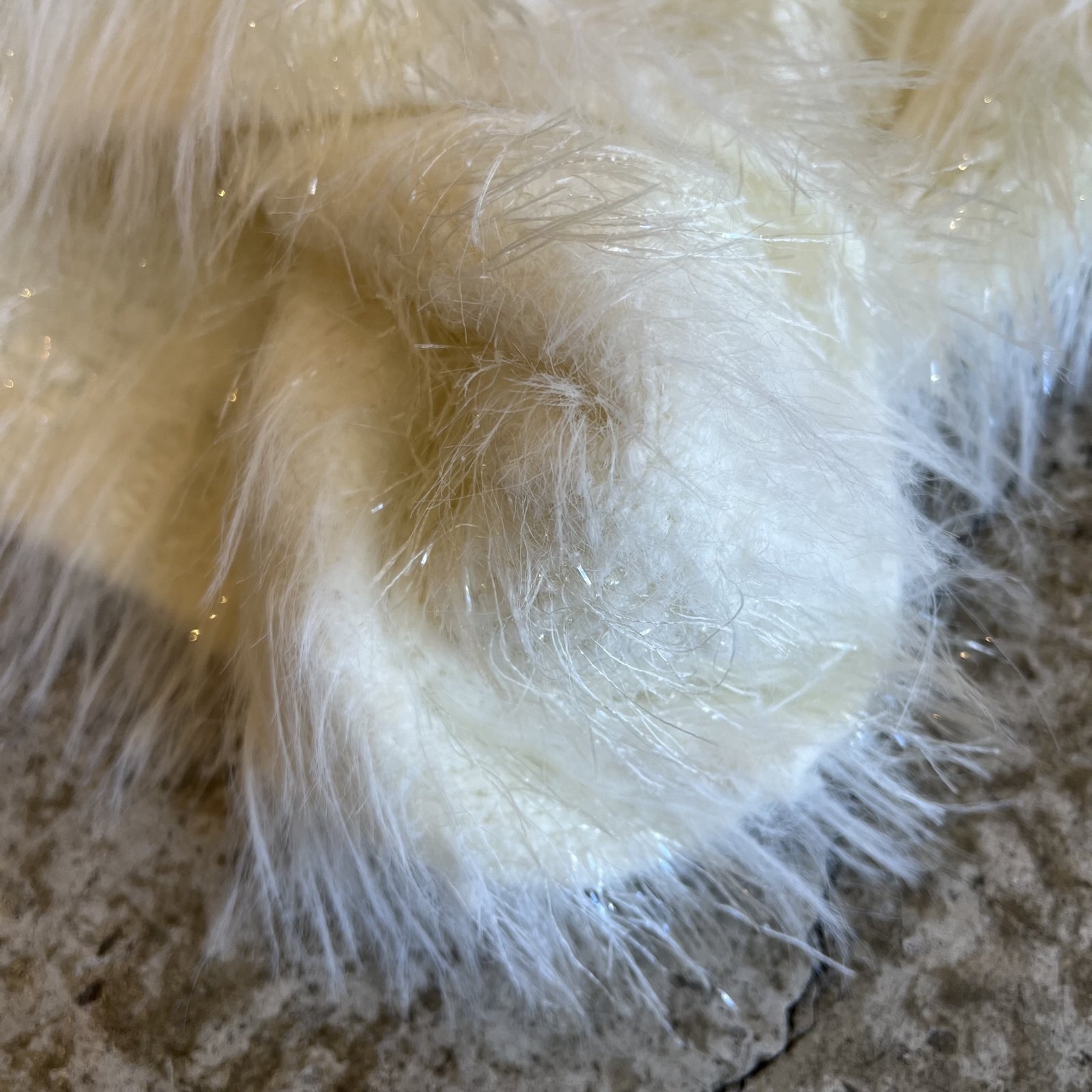 WHITE COLOR GLITTER MIX LONG SHAGGY DESIGN L/S KNIT TOPS / Ladies M