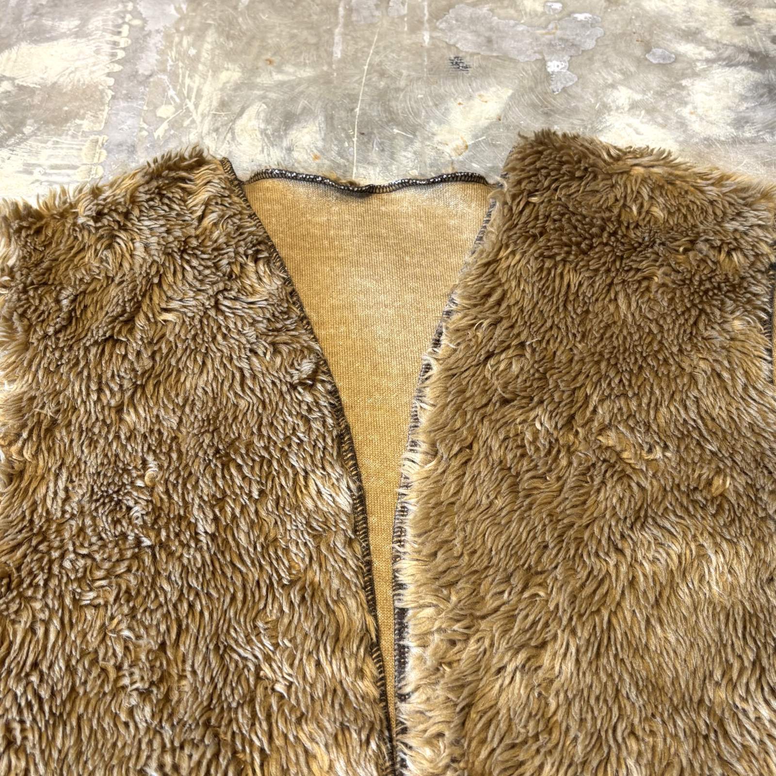 FRONT OPEN BROWN COLOR BOA VEST / Mens L