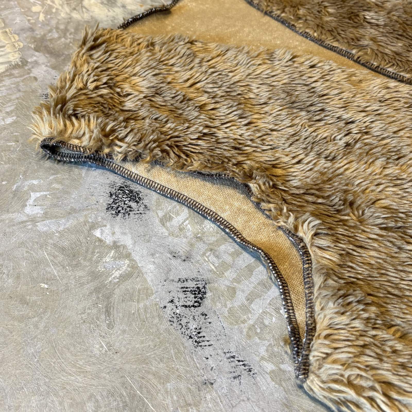 全体がブラウンに統一された、デザインボアベスト。