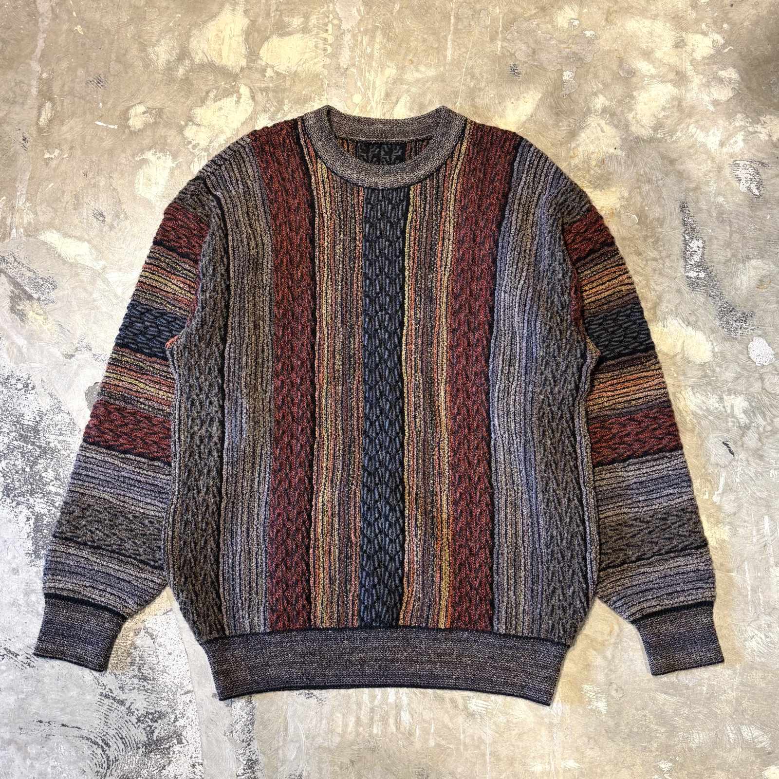 MULTI STRIPE PATTERN KNIT SWEATER / Mens L