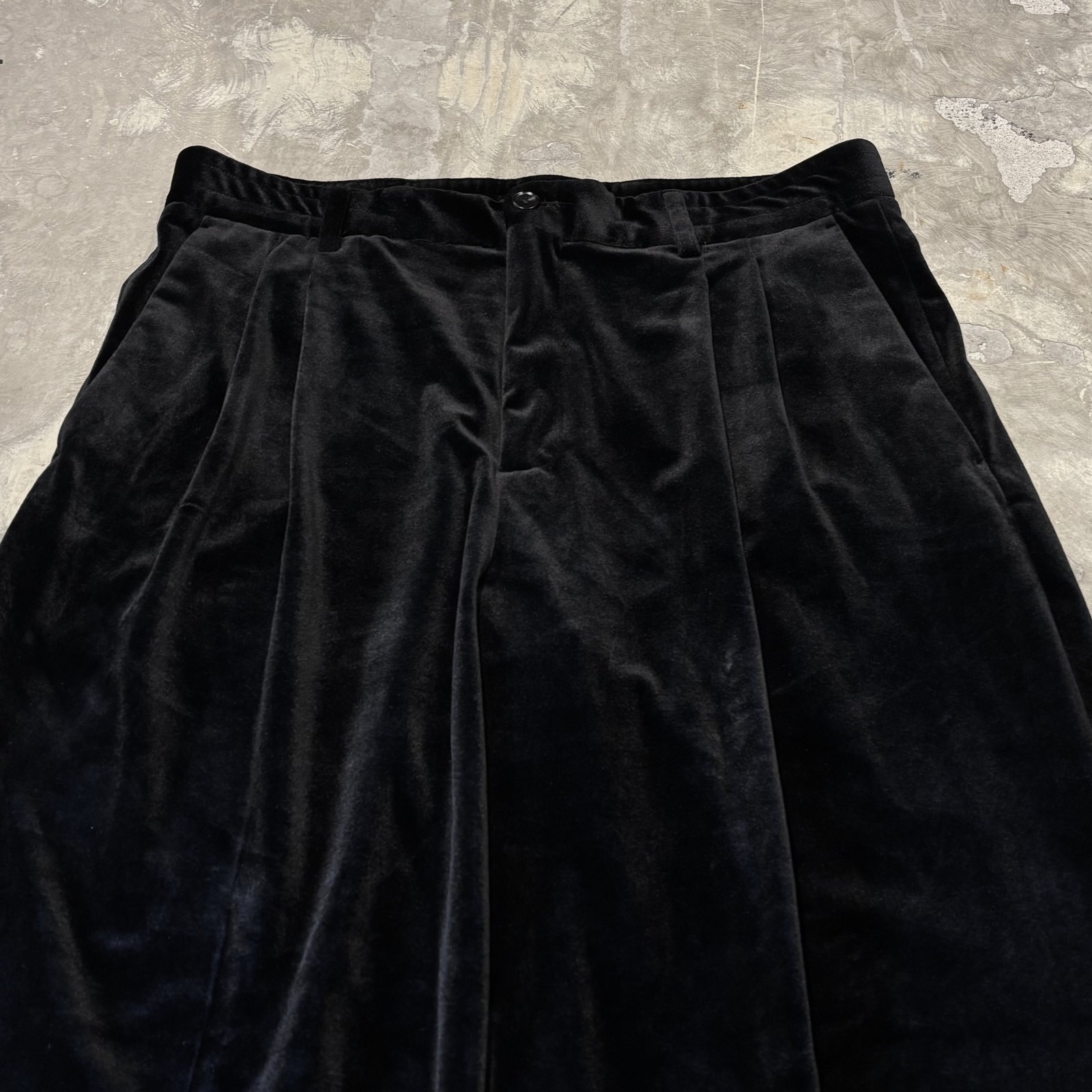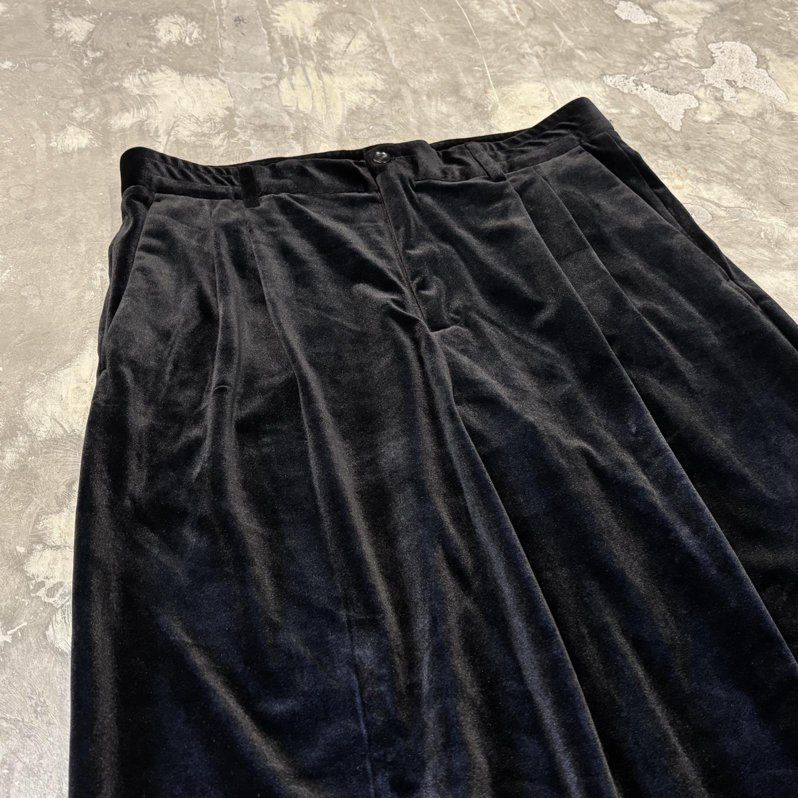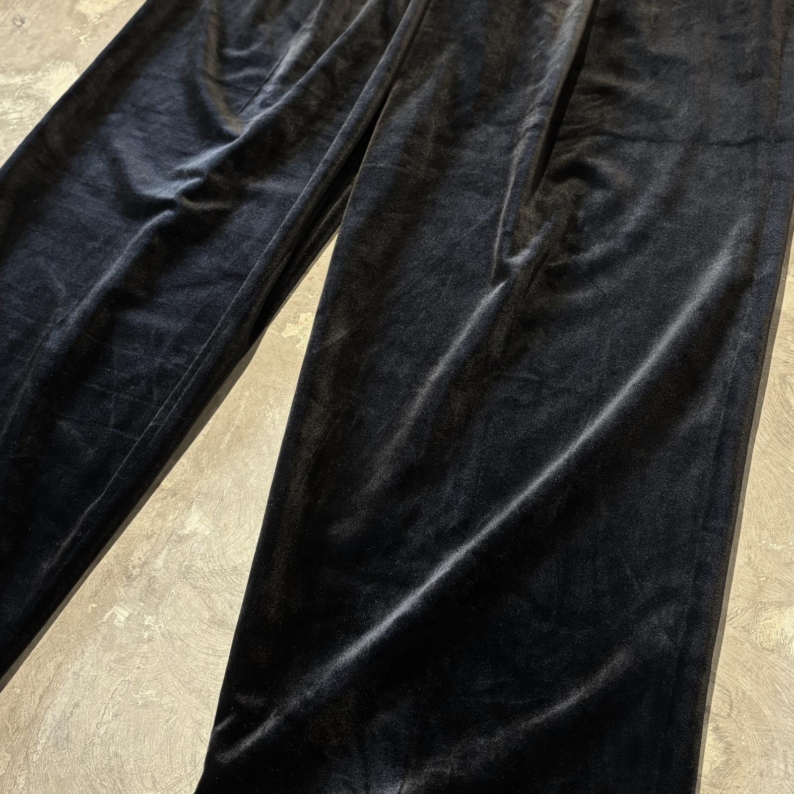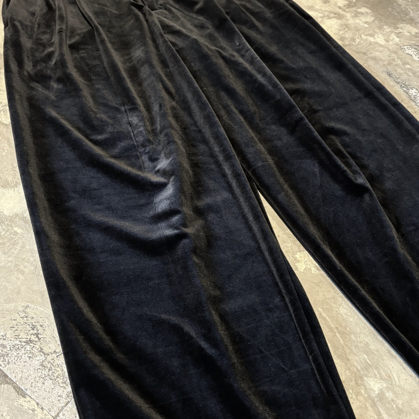 BLACK COLOR VELOUR WIDE SILHOUETTE SLACKS / W33
