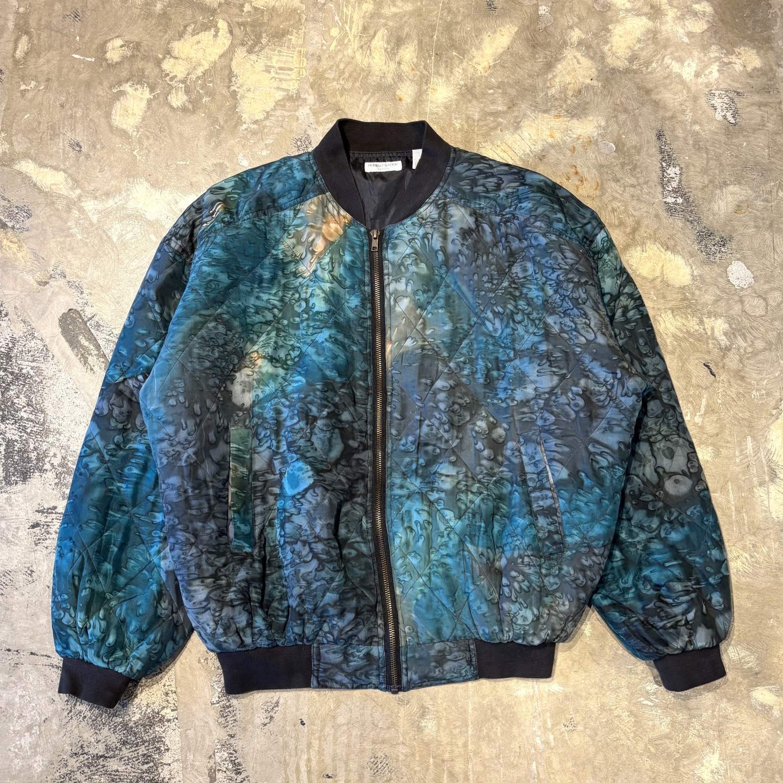 ALL OVER ARTISTIC PATTERN ZIP UP SILK JACKET / Mens S(L)