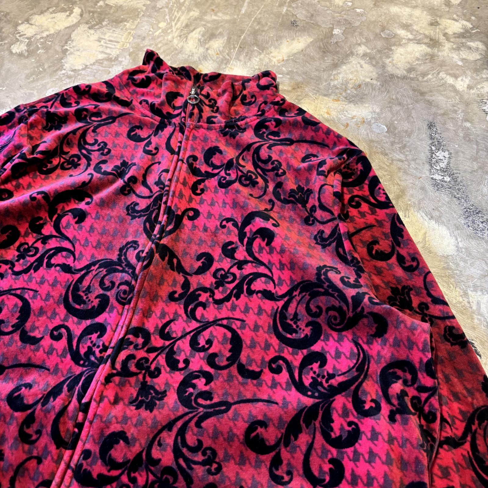 ALL OVER PATTERN HI-NECK ZIP UP VELOUR JACKET / Mens L