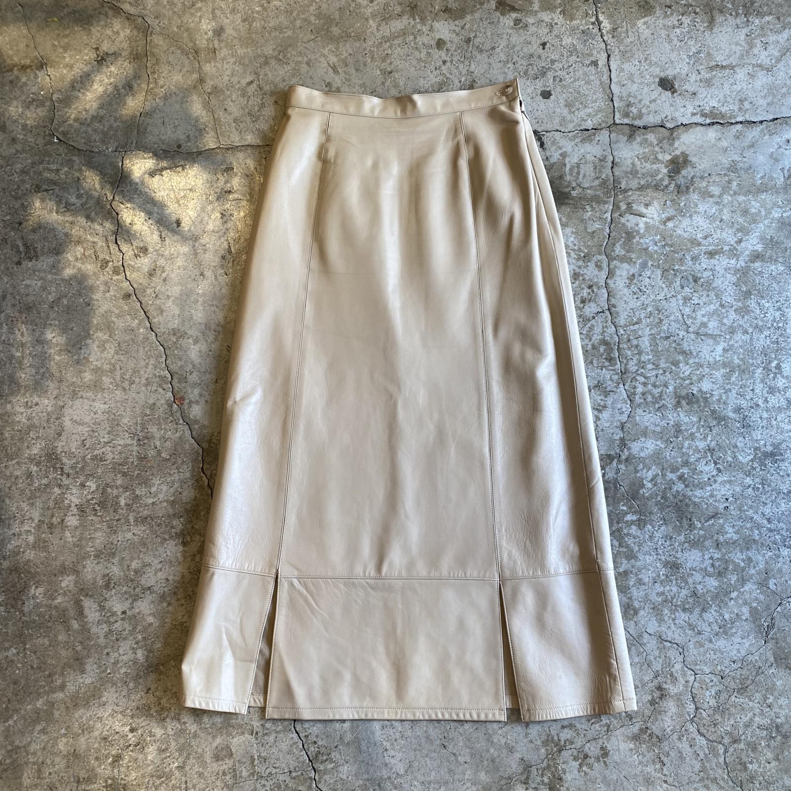 DESIGN 2SLIT LEATHER LONG SKIRT / W27