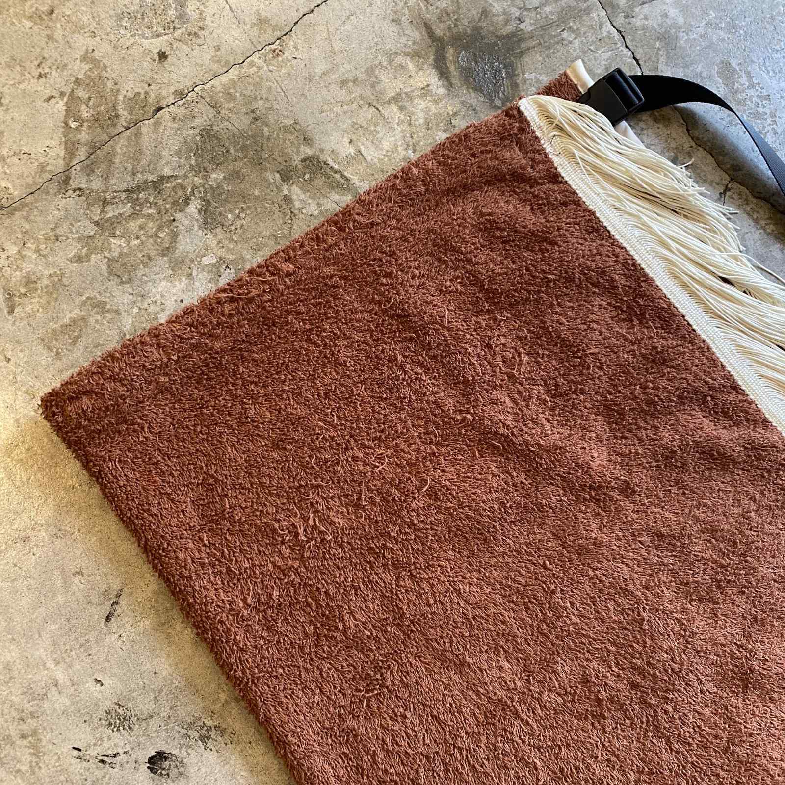 パイル地のような柔らかな質感にフリンジの装飾が動きと華やかさをプラス。