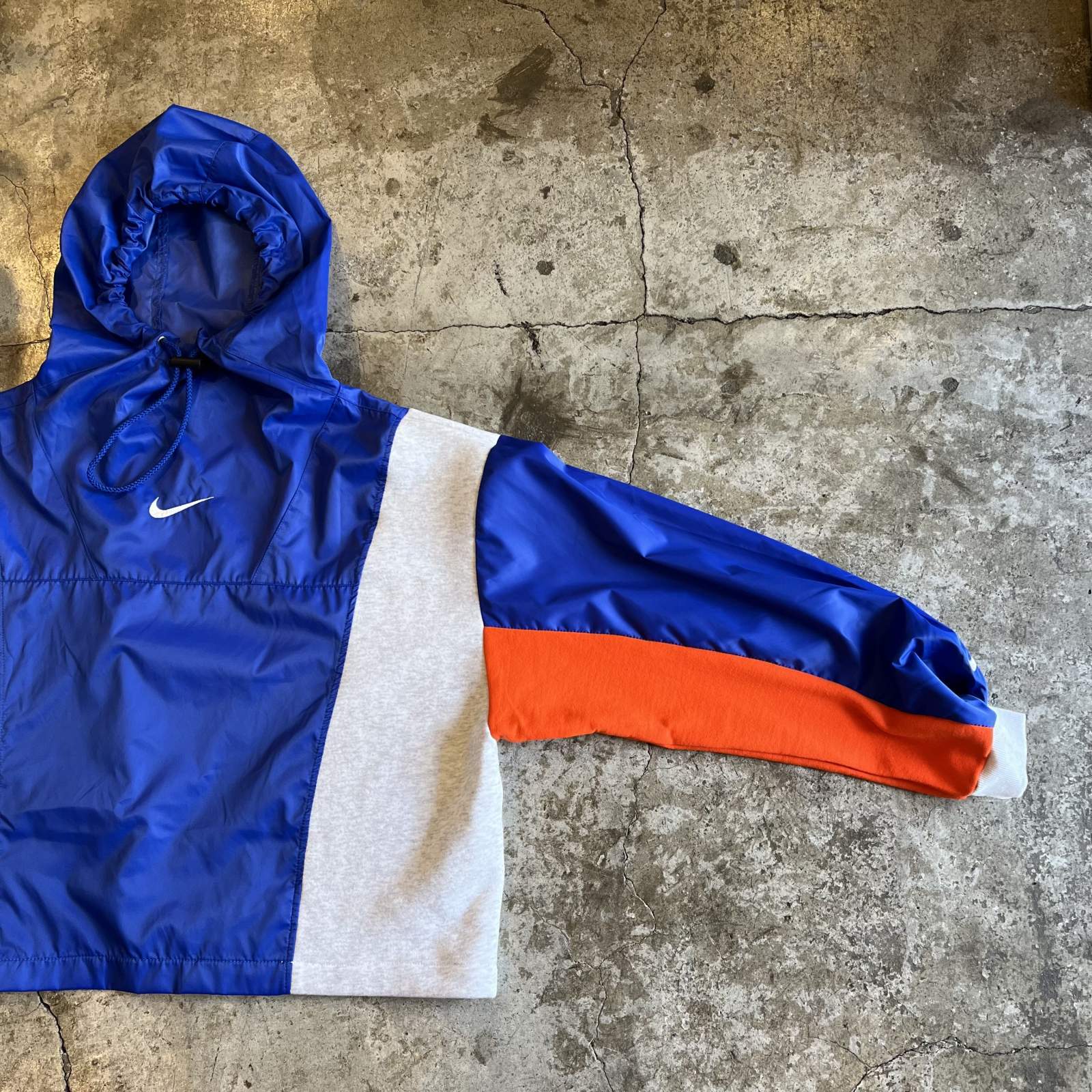 スポーツブランド"NIKE"のナイロンフーディー2色のスウェットをドッキング。