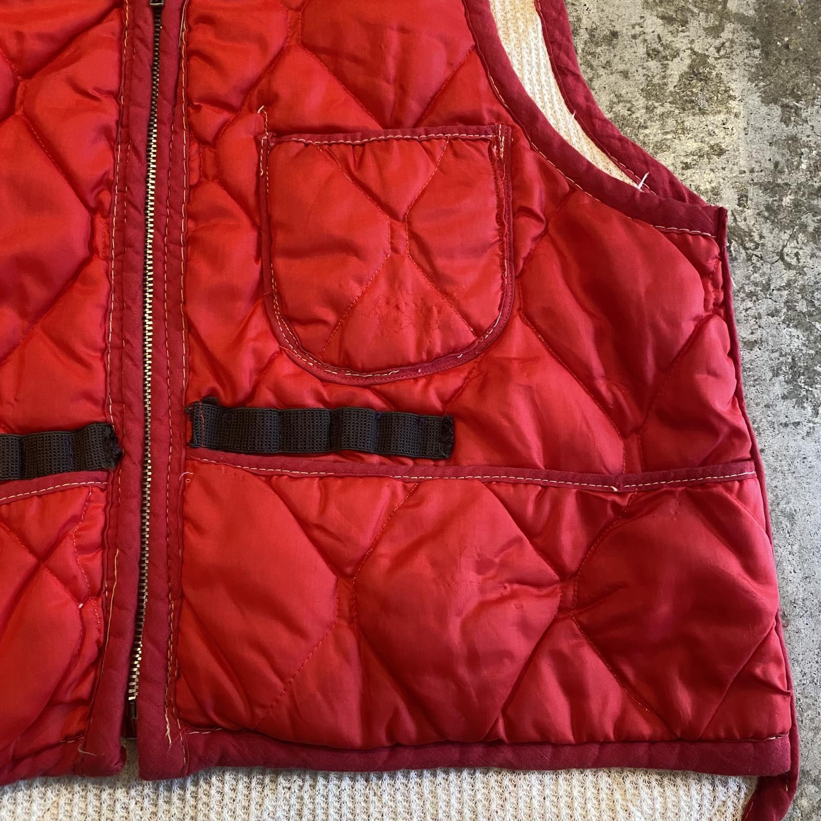 OLD QUILTING DESIGN RED COLOR LINING THERMAL VEST / Ladies L