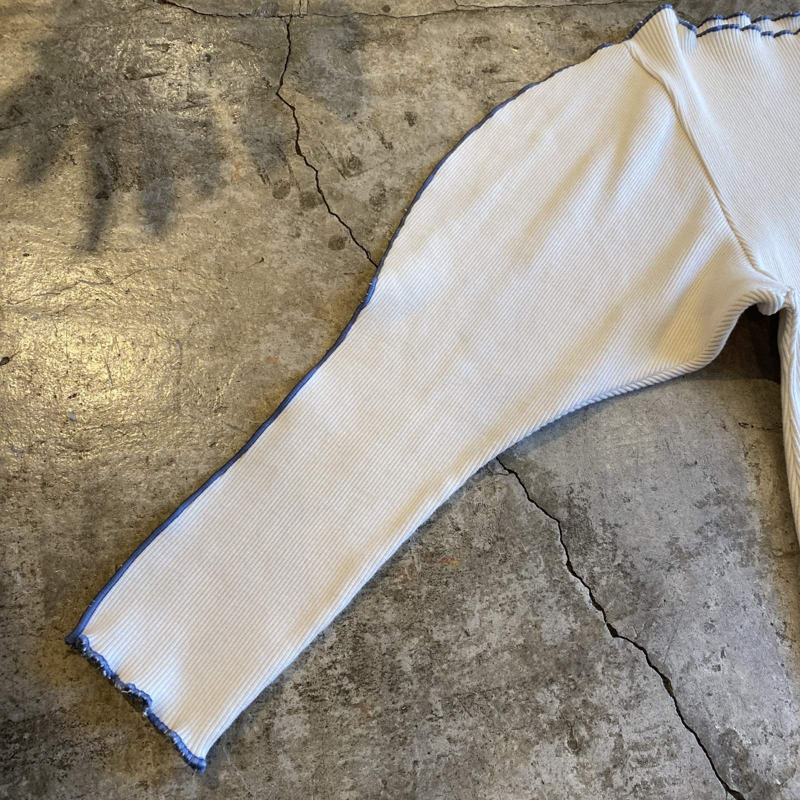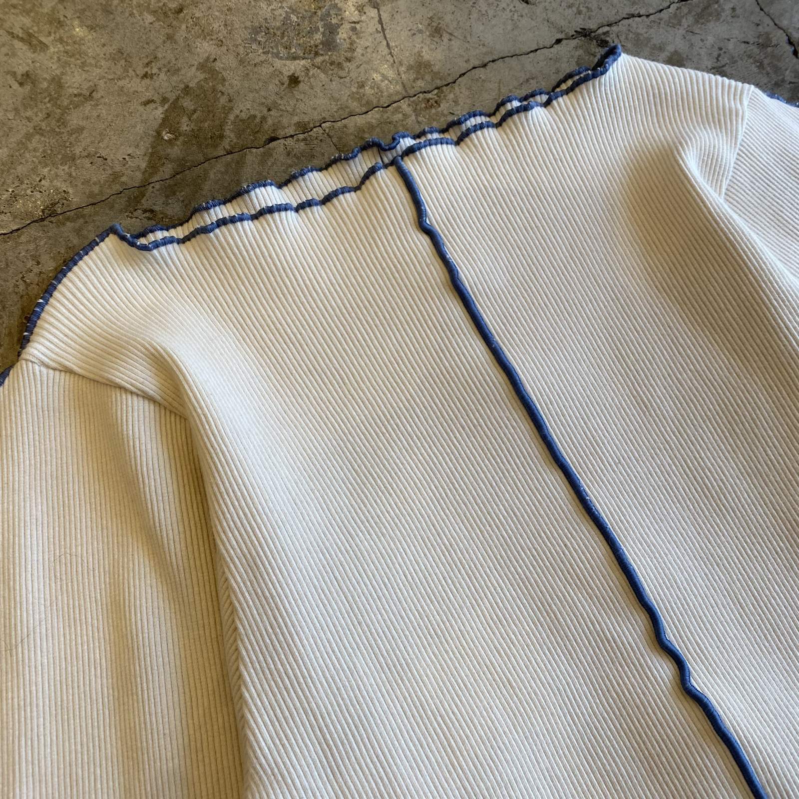ナチュラルなサーマルにカラーステッチが表に出したトップス。