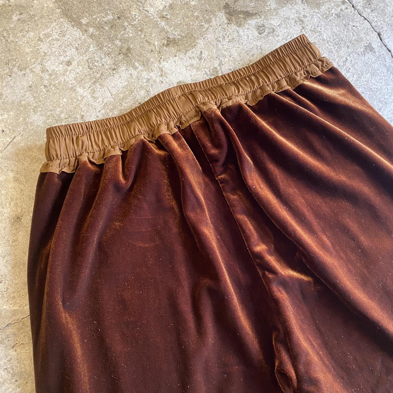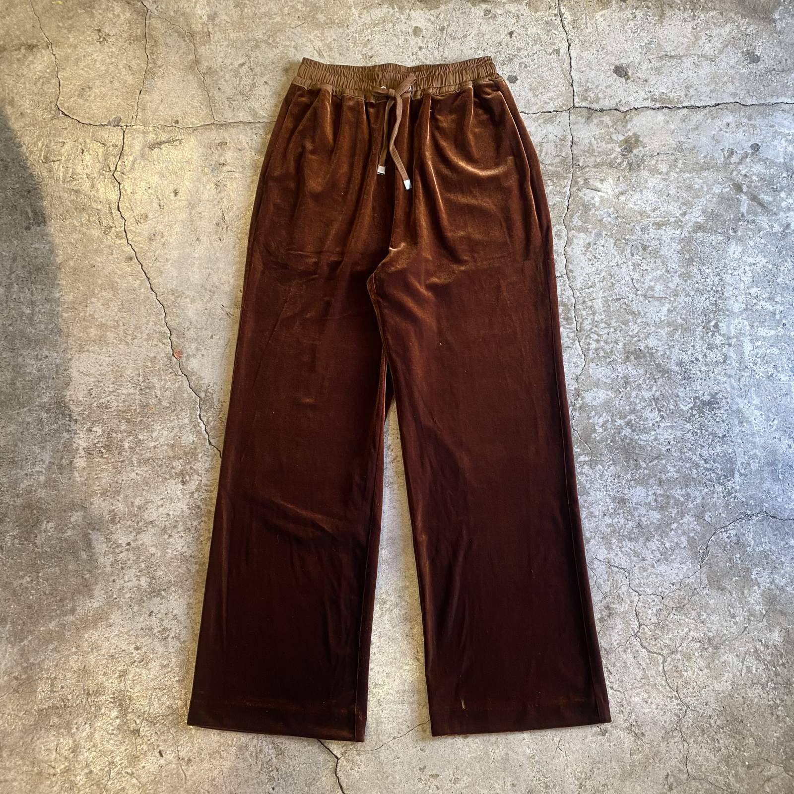 WAIST RIBBON DESIGN BROWN COLOR VELVET PANTS / ~W35