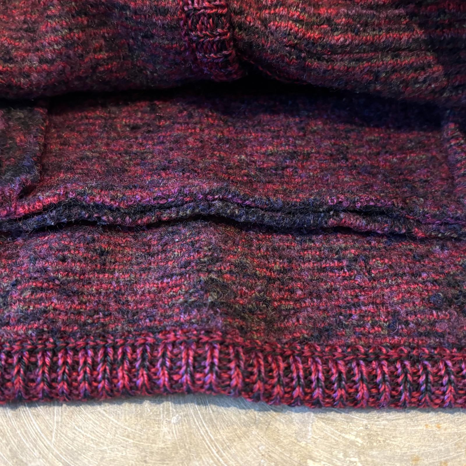 パープルをベースとしたカラーリングに上品なショールカラーが高級感を放つ1枚。