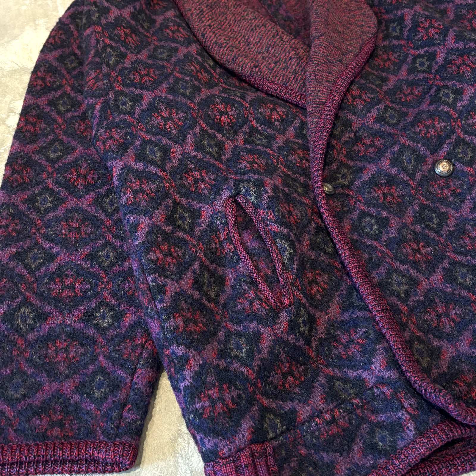 ALL OVER PATTERN SHAWL COLLAR KNIT CARDIGAN / Mens L