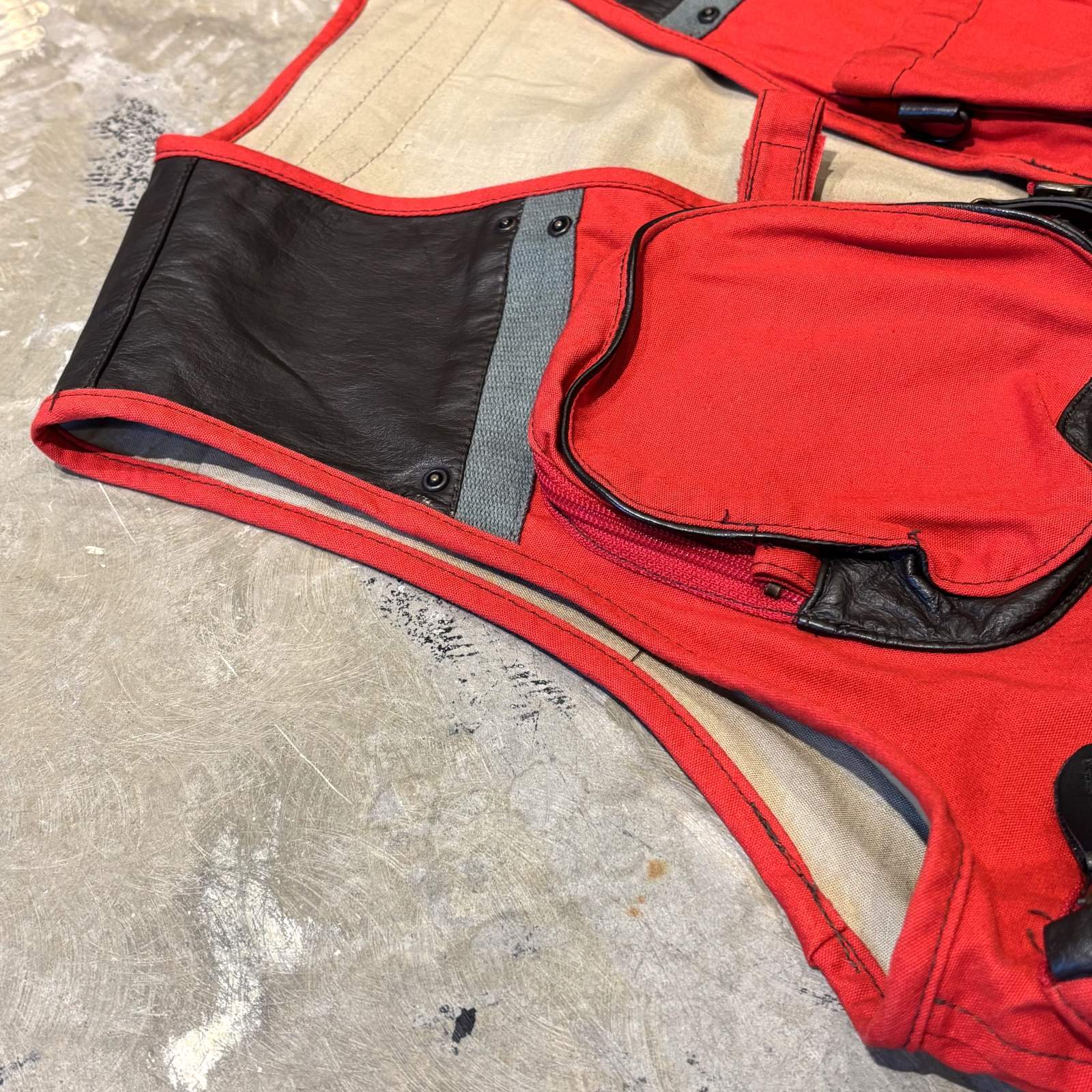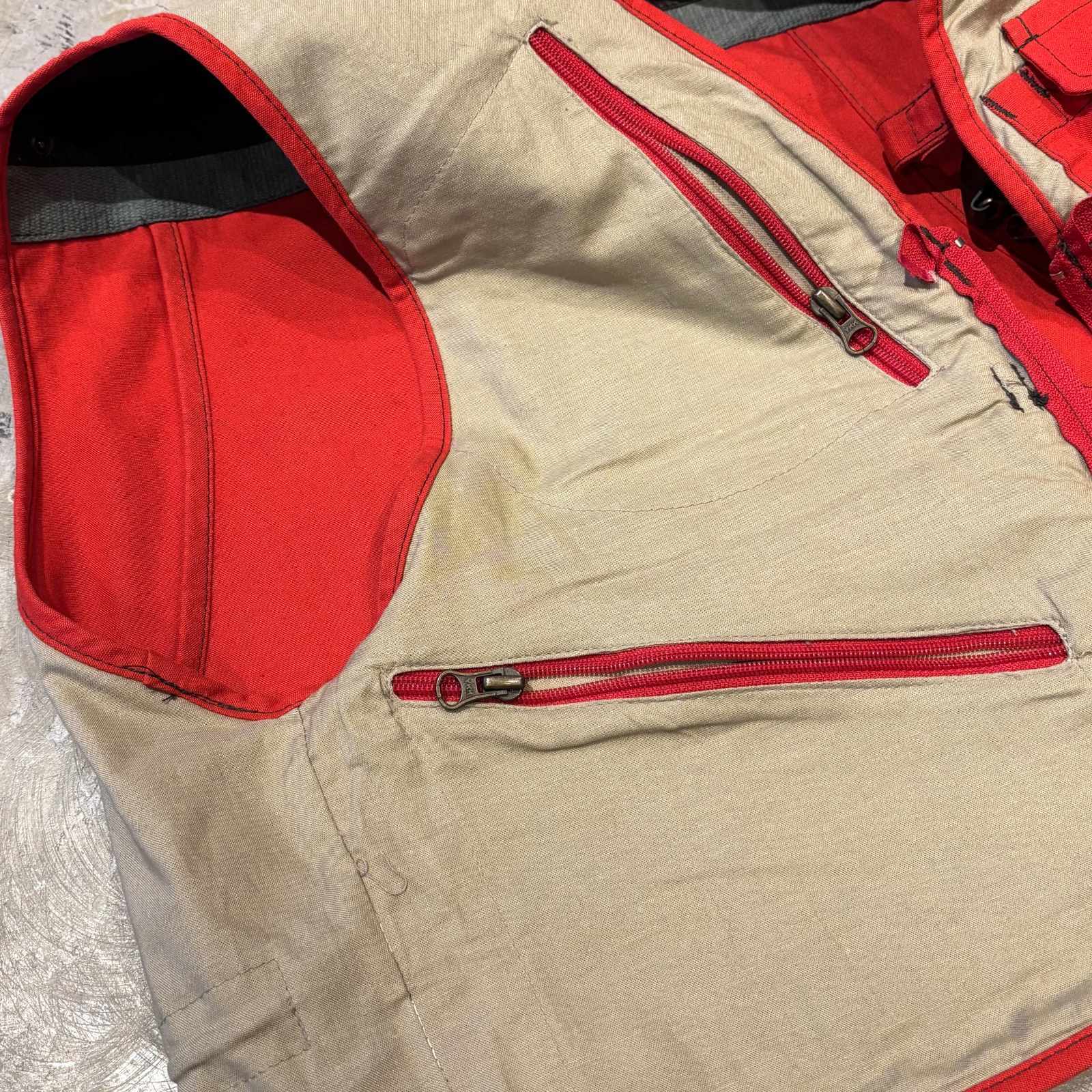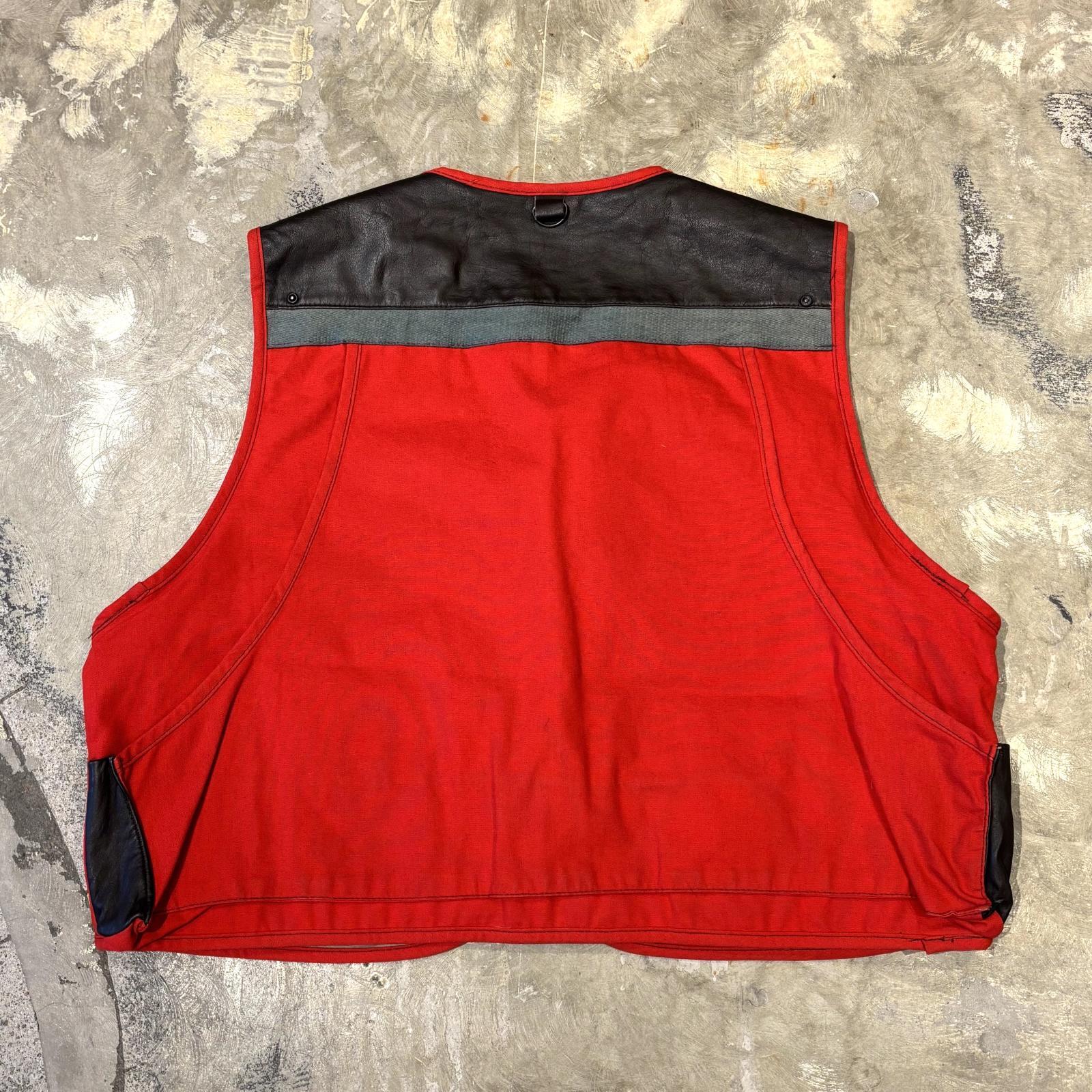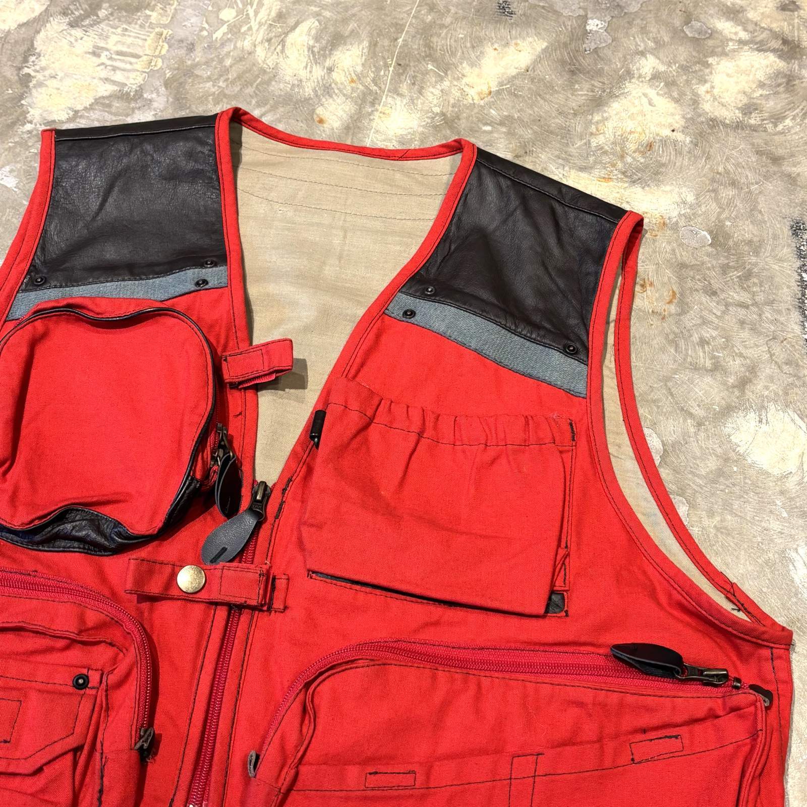 - > LEATHER PATCH MULTI POCKET COLOR VEST / Mens L