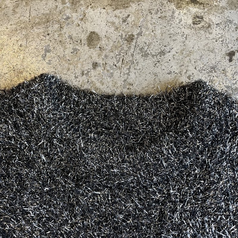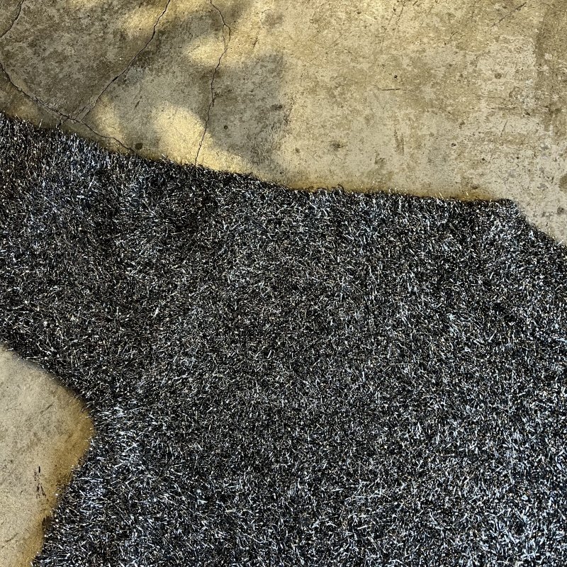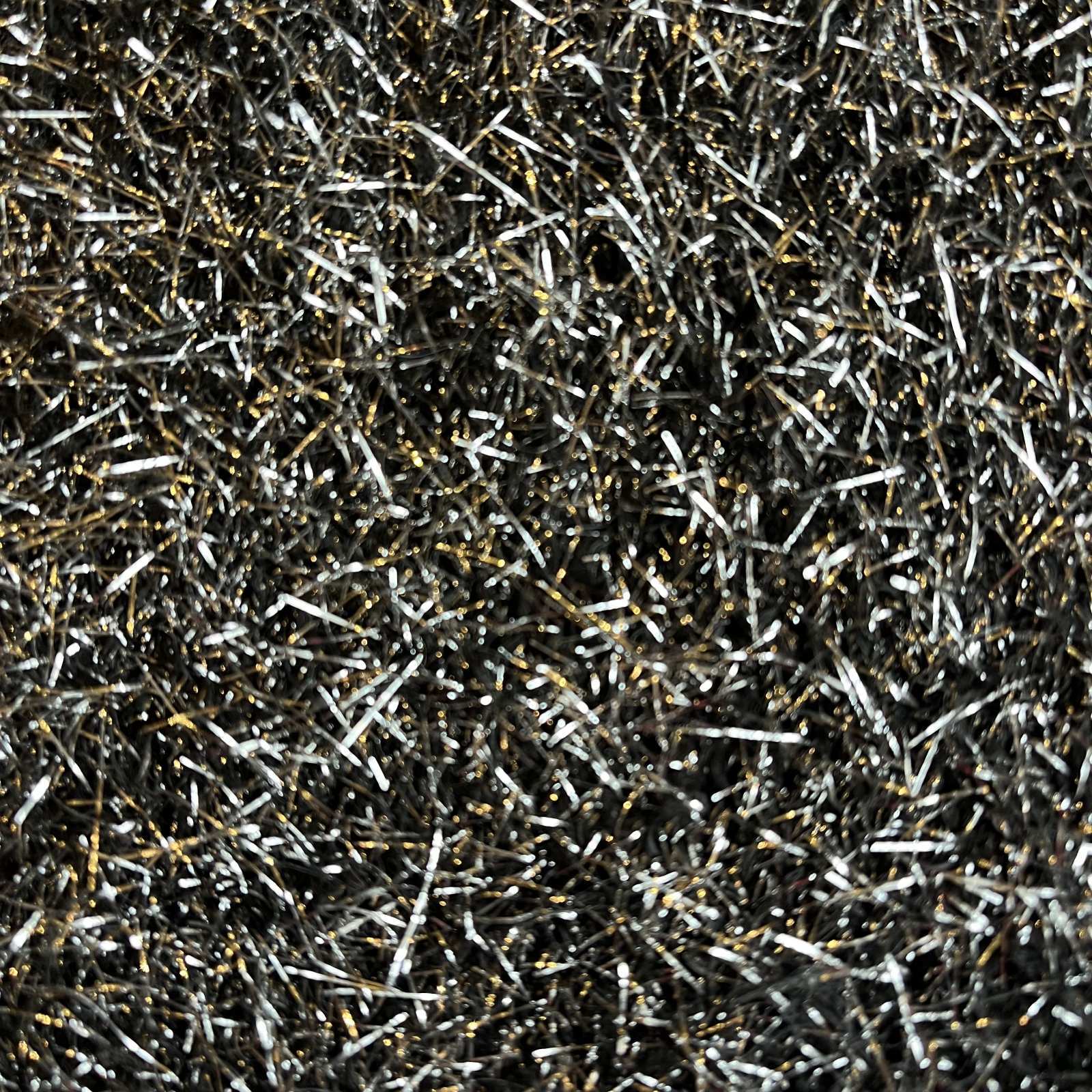 ブラックボディ全体にシルバーカラーのシャギーが散りばめられた1枚。