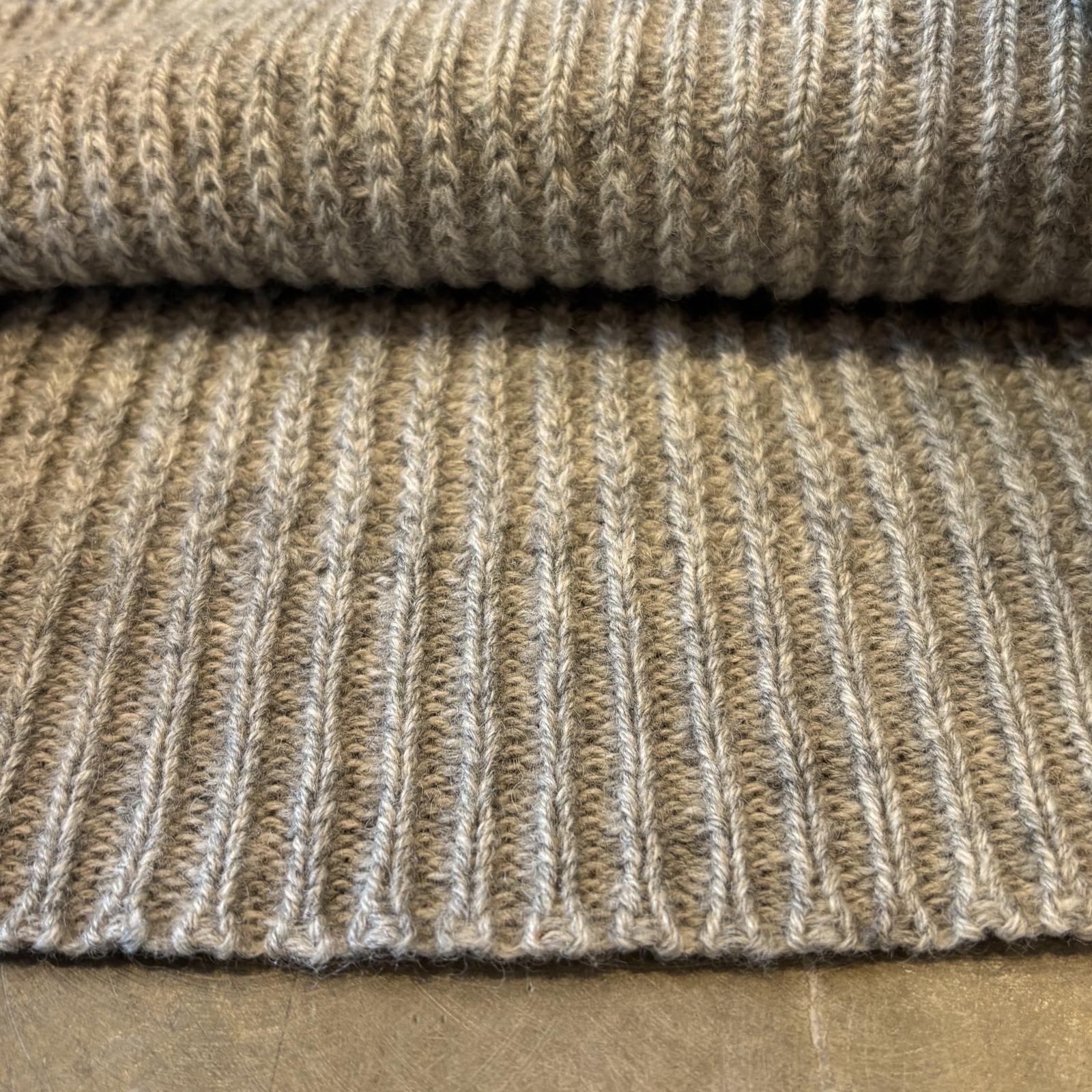 肩部、肘部にスエードパッチが施された、デザインニットセーター。