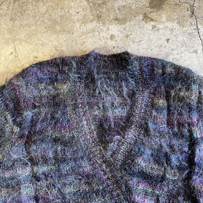 MIX COLOR MULCH BORDER PATTERN DESIGN MOHAIR KNIT CARDIGAN / Ladies M