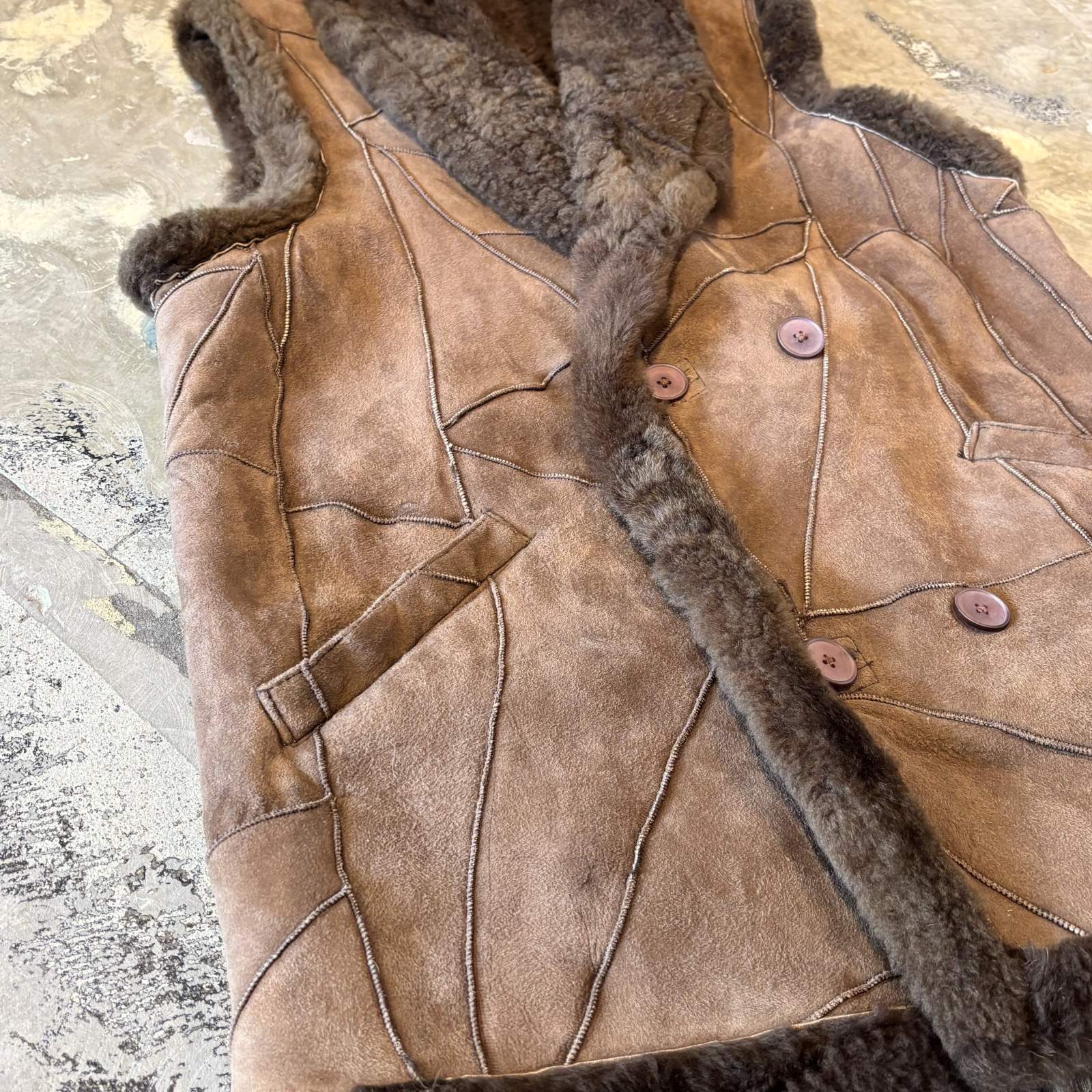 - > BROWN COLOR SUEDE LEATHER×BOA SWITCHED VEST / Mens XL