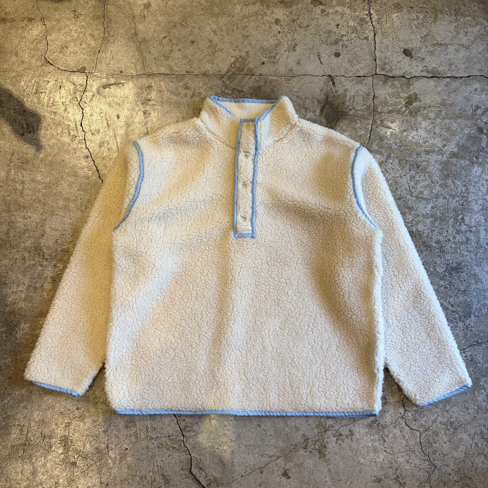 【WONDERGROUND】SNAP DESIGN PIPING BOA KNIT TOPS / WHITE / OS