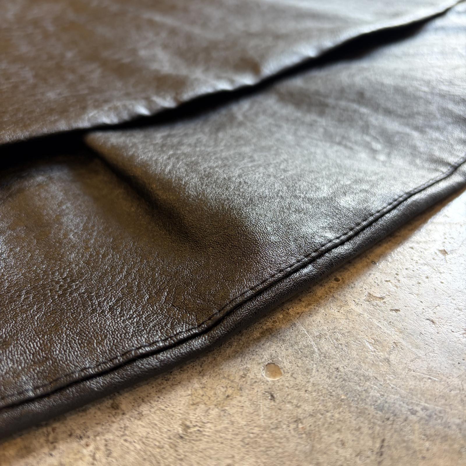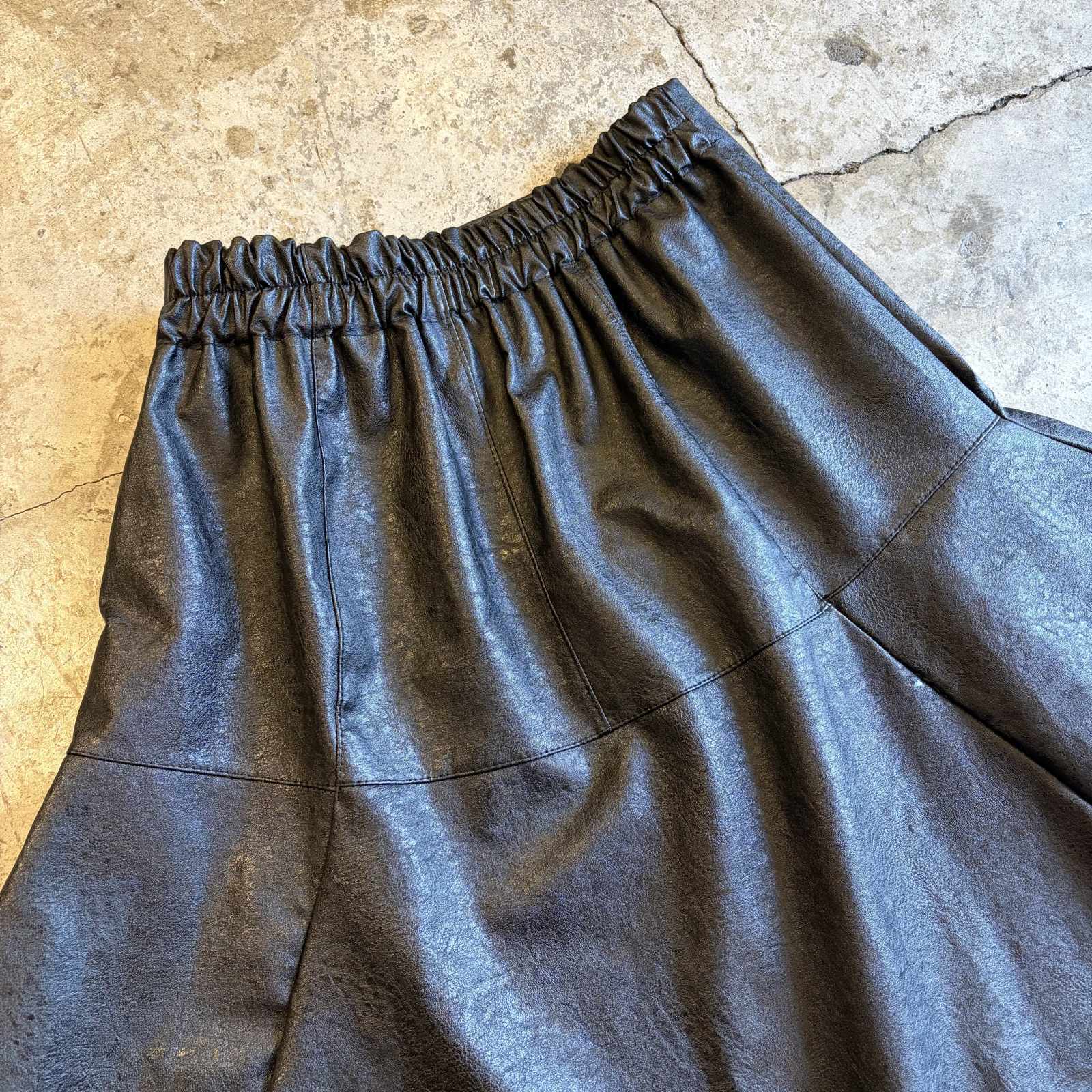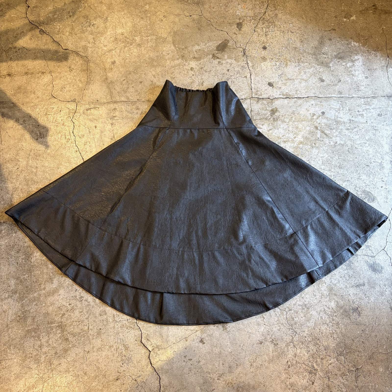 BLACK COLOR FAUX LEATHER ROUND DESIGN FLARE SKIRT / W25~W30