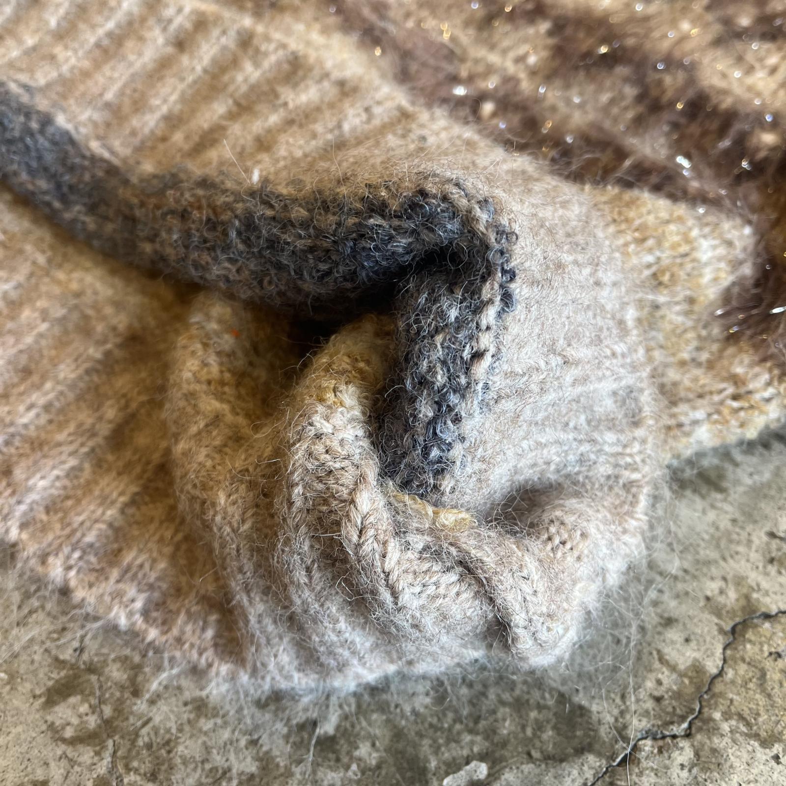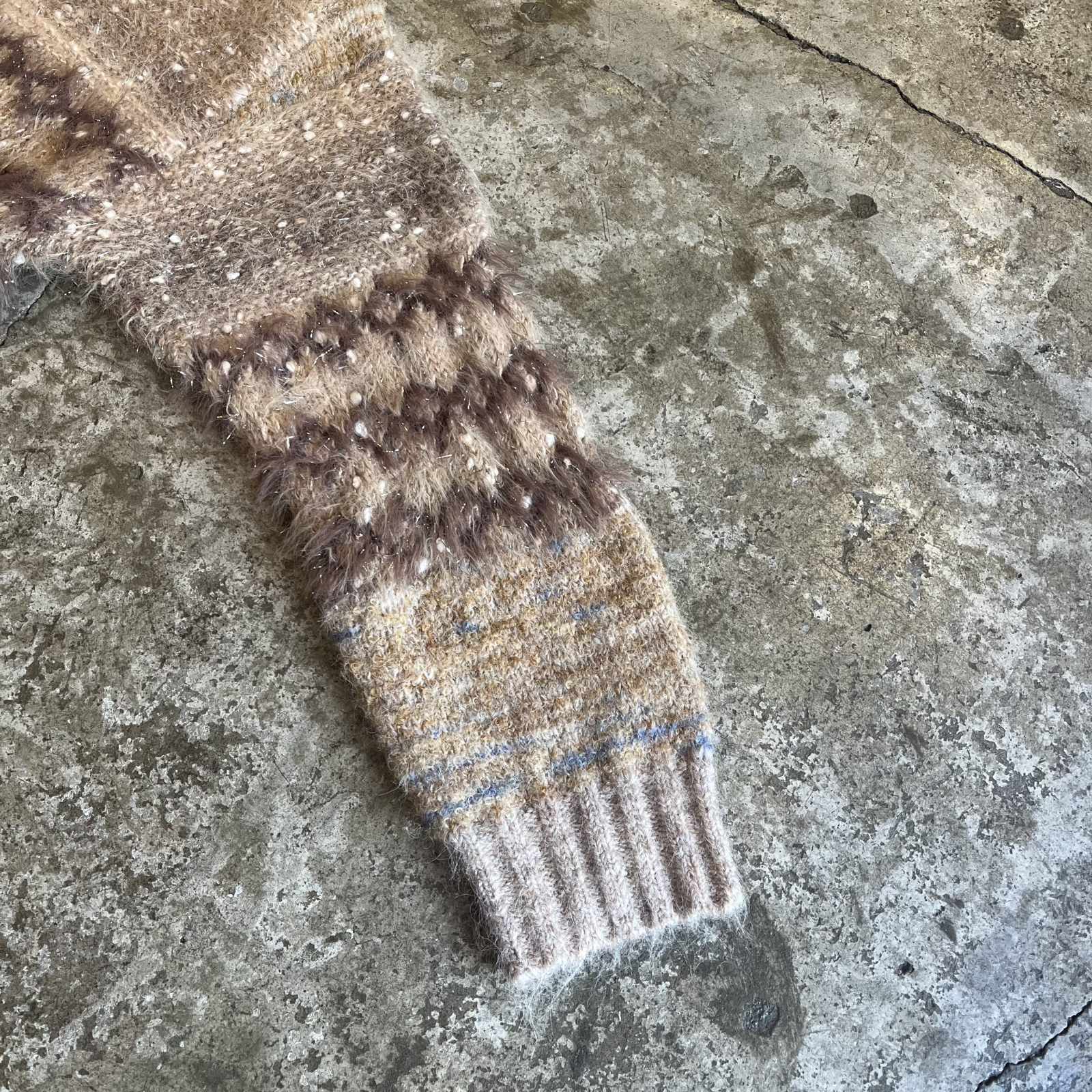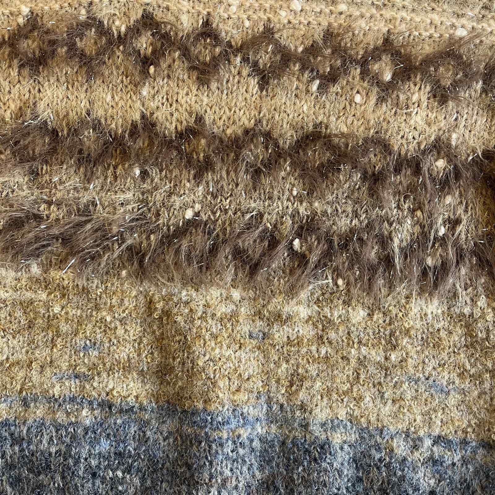 4 COLOR BUTTON GLITTER MIX MULTI BORDER DESIGN KNIT SWEATER / Ladies M
