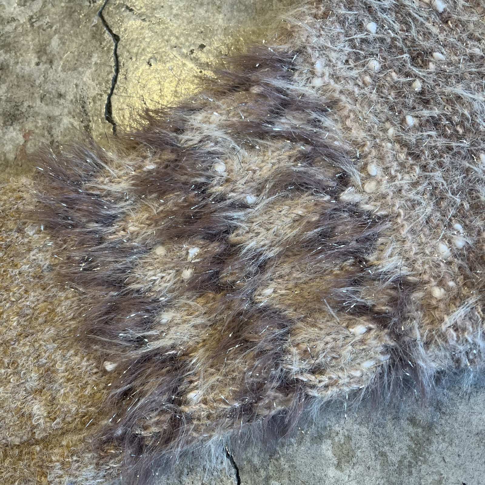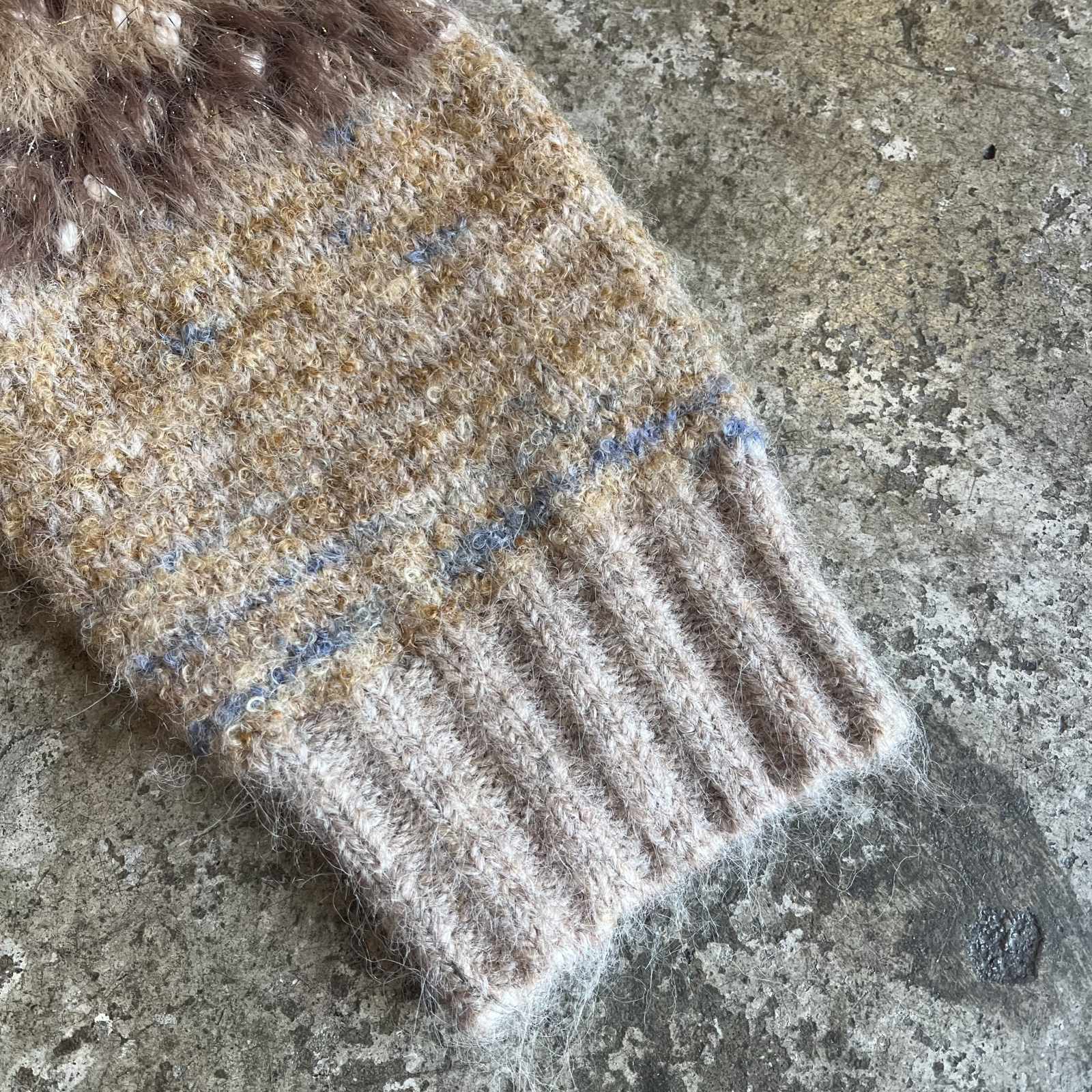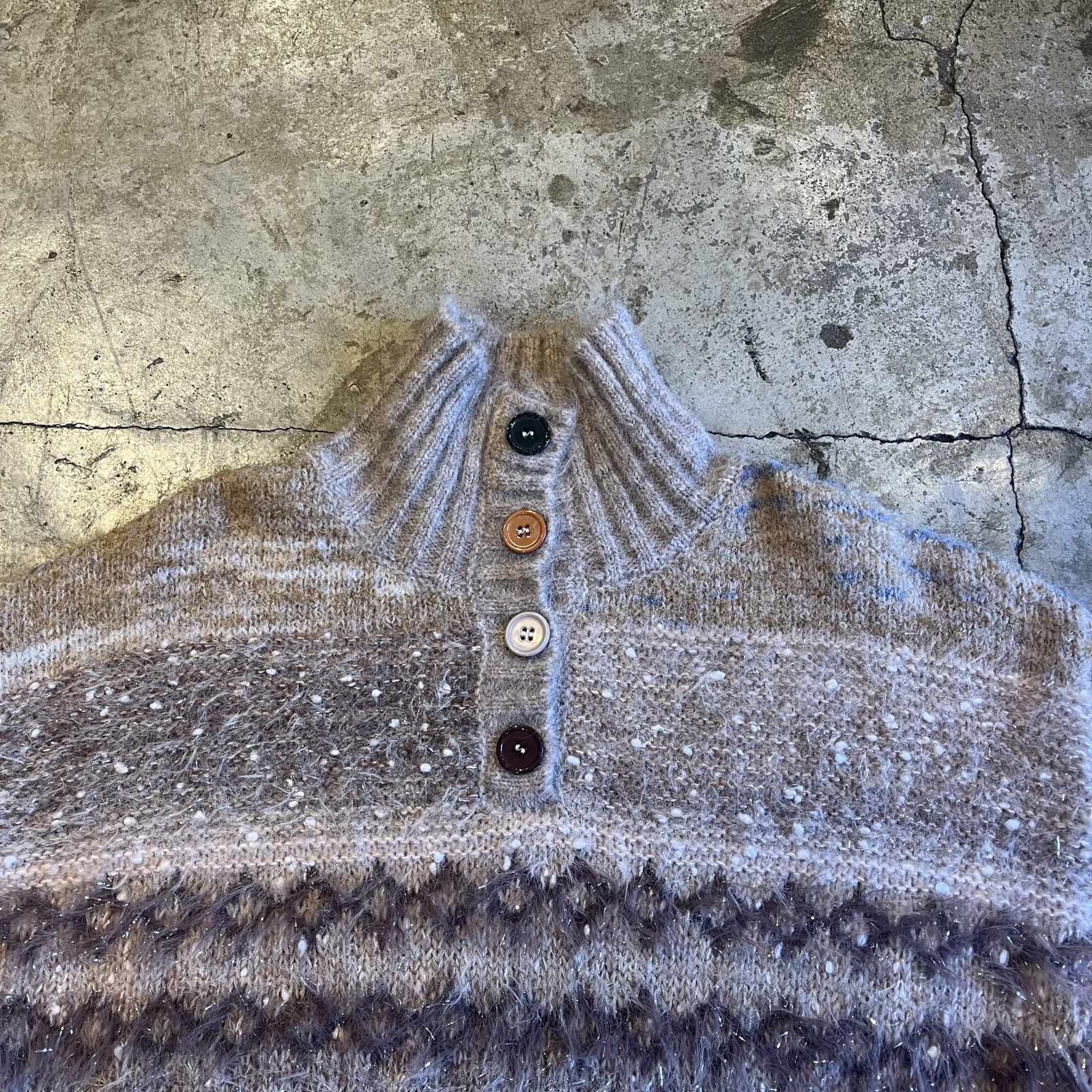 4 COLOR BUTTON GLITTER MIX MULTI BORDER DESIGN KNIT SWEATER / Ladies M