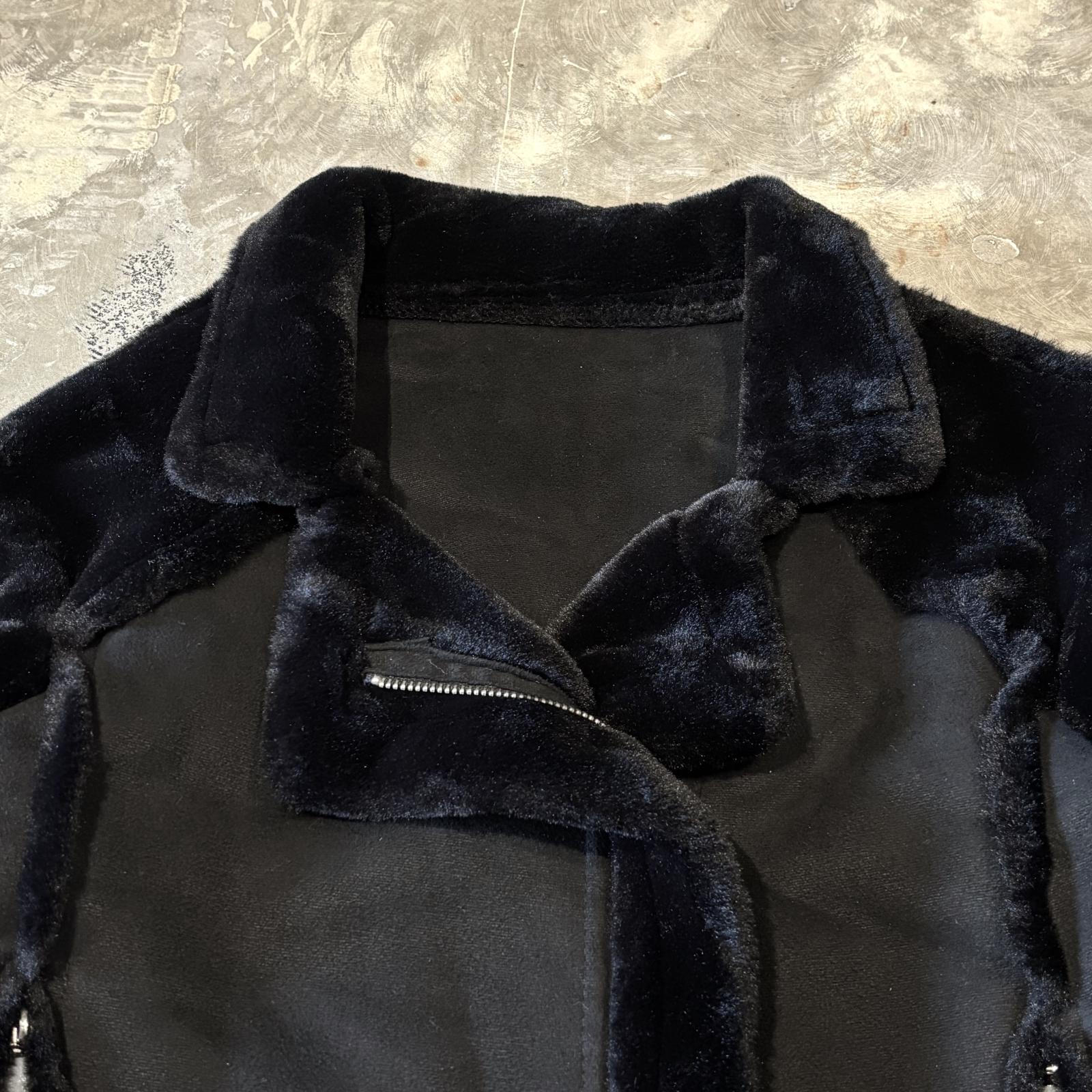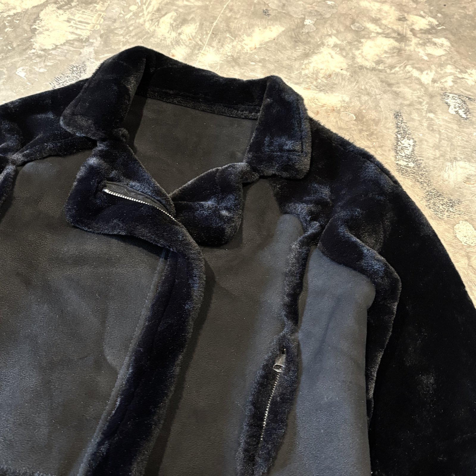 FAUX SUEDE SWITCHED FAUX FUR ZIP UP JACKET / Mens L