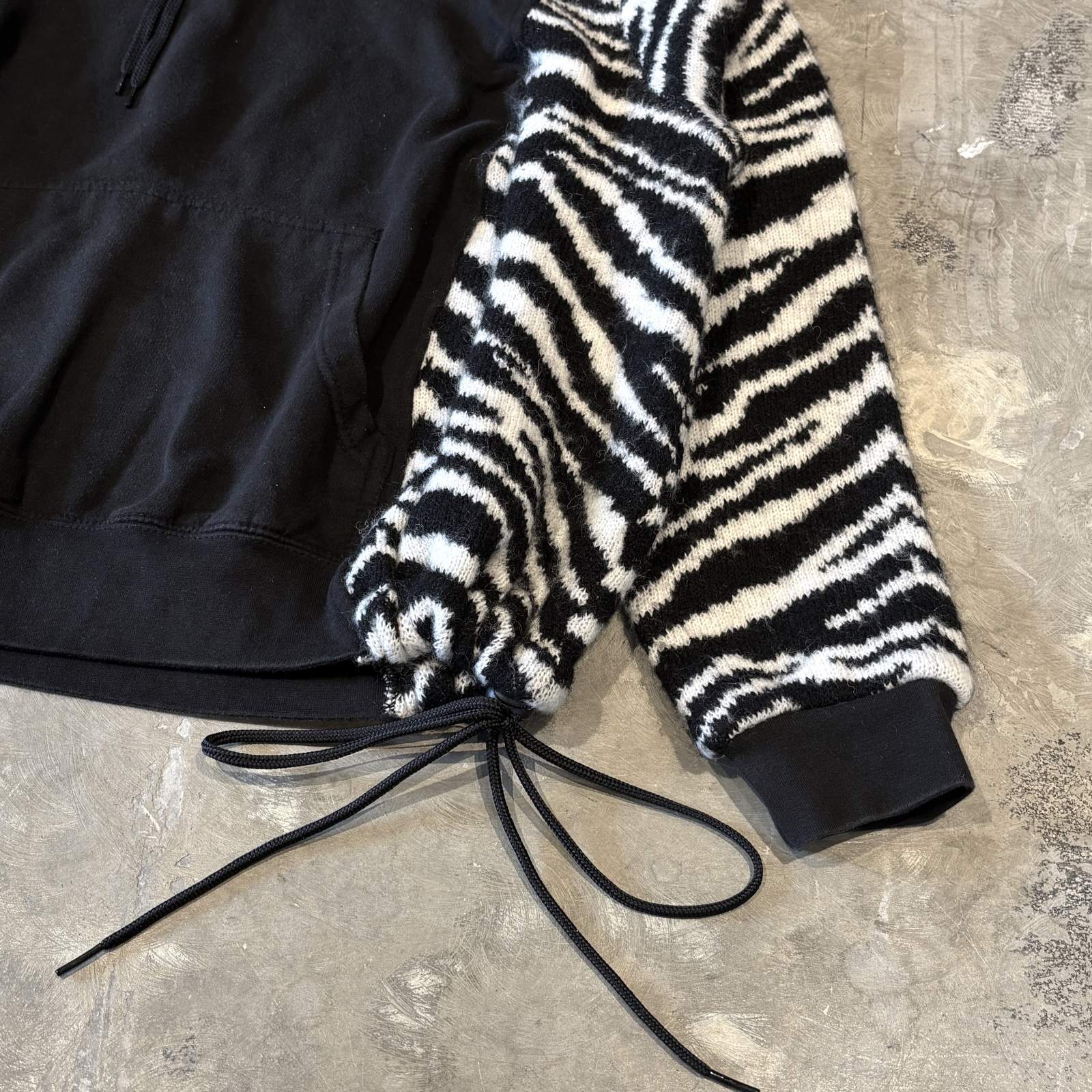 総柄のニットセーターとNIKEのスウェットパーカーをドッキングした1枚。