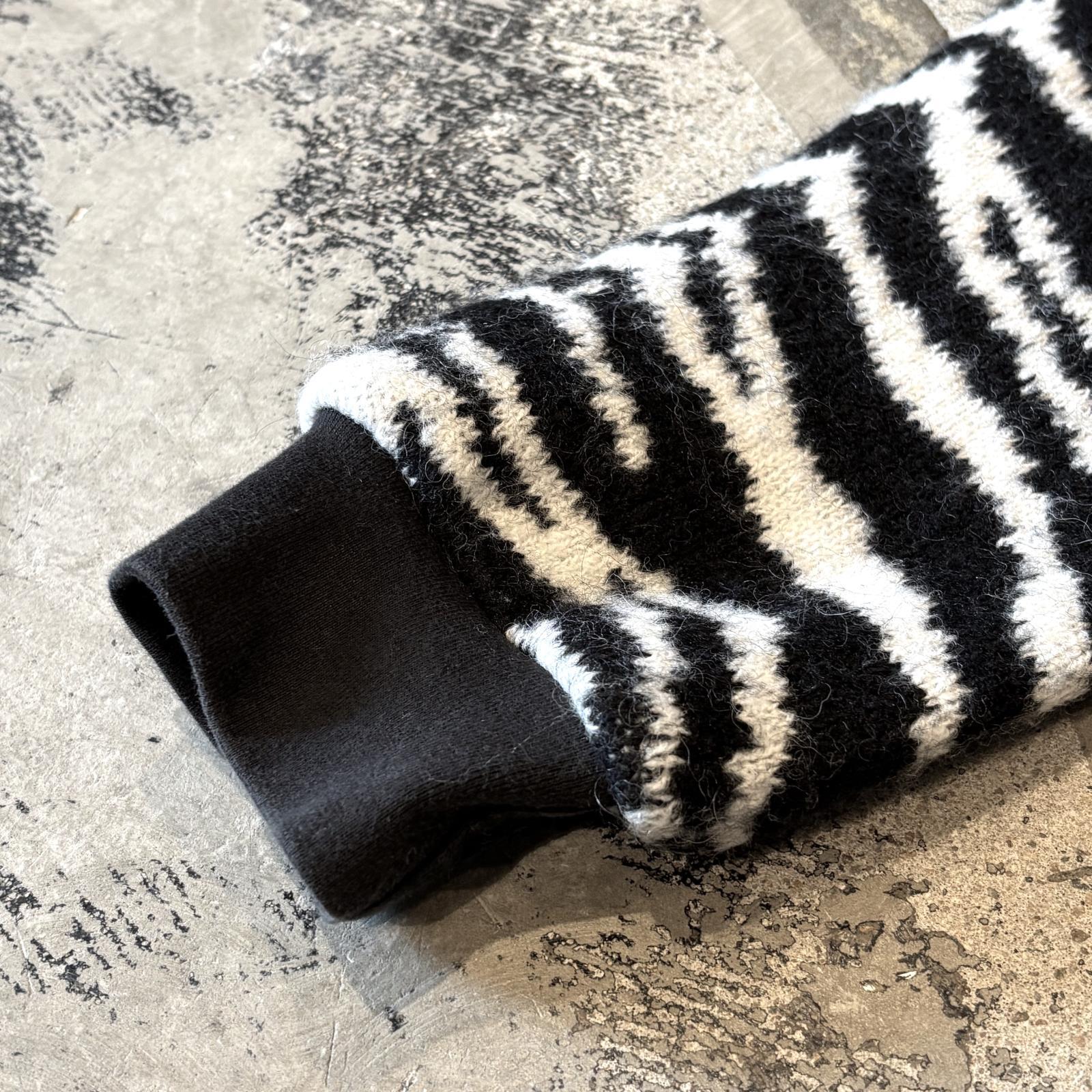 インパクトのある総柄ニットをシンプルなスウェットと組み合わせることで使いやすく落とし込んだデザイン。