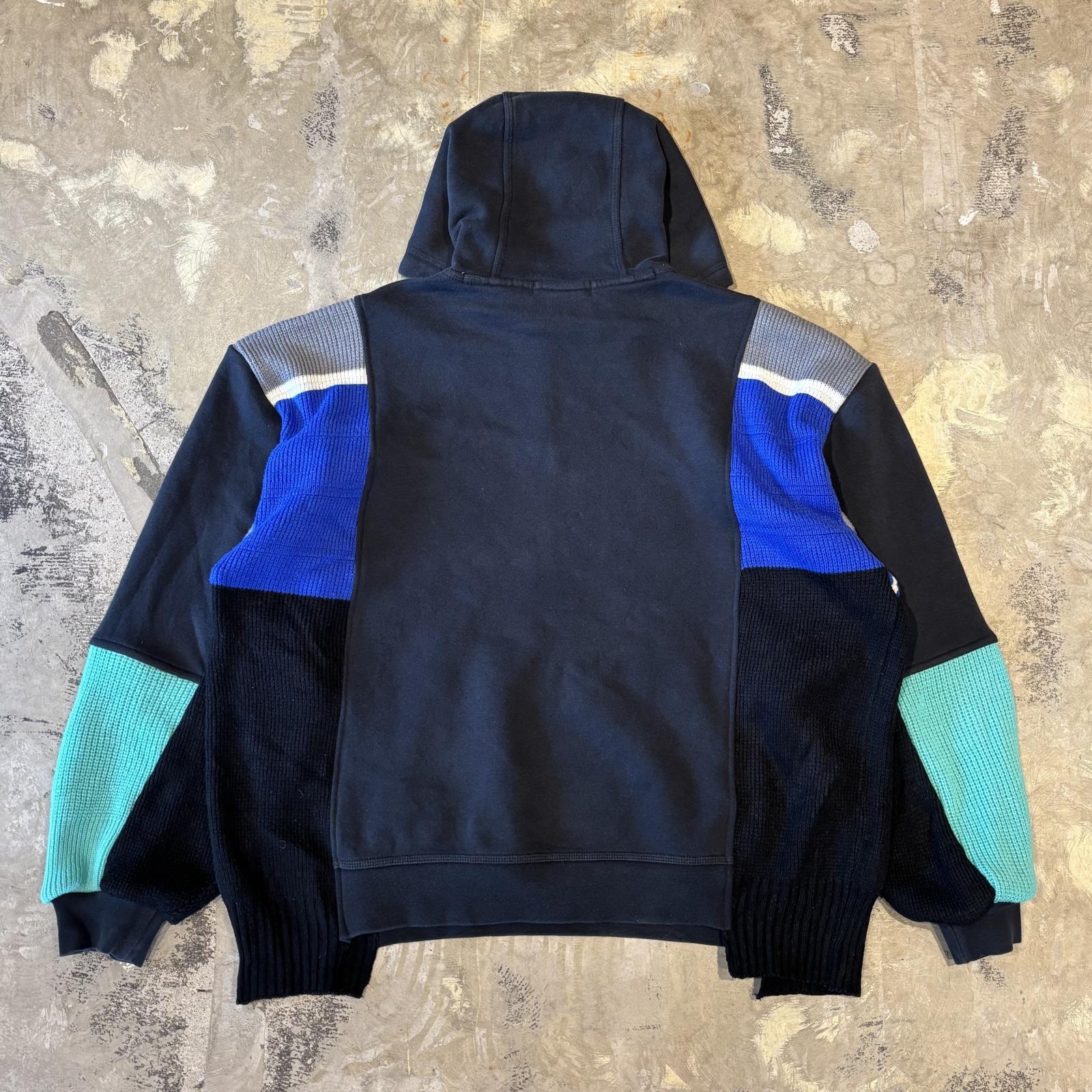 総柄のニットセーターとNIKEのスウェットパーカーをドッキングした1枚。