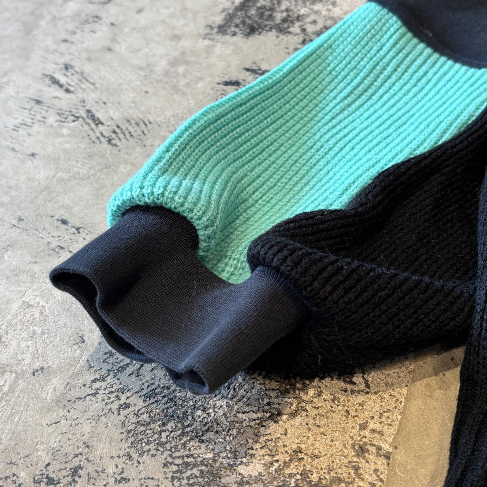 インパクトのある総柄ニットをシンプルなスウェットと組み合わせることで使いやすく落とし込んだデザイン。