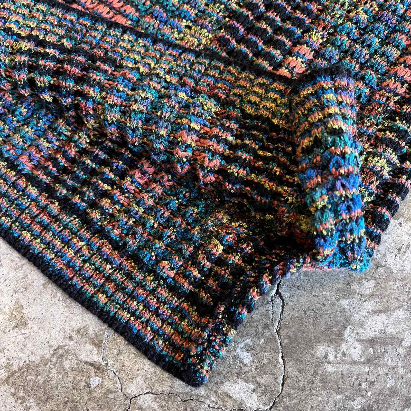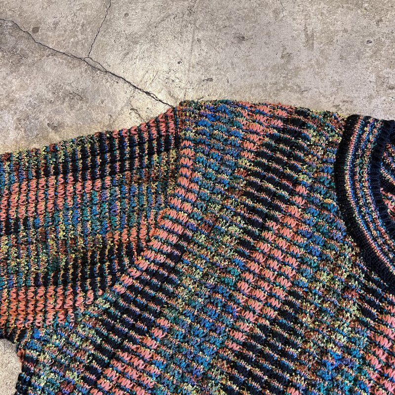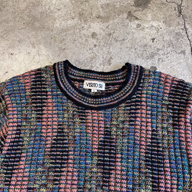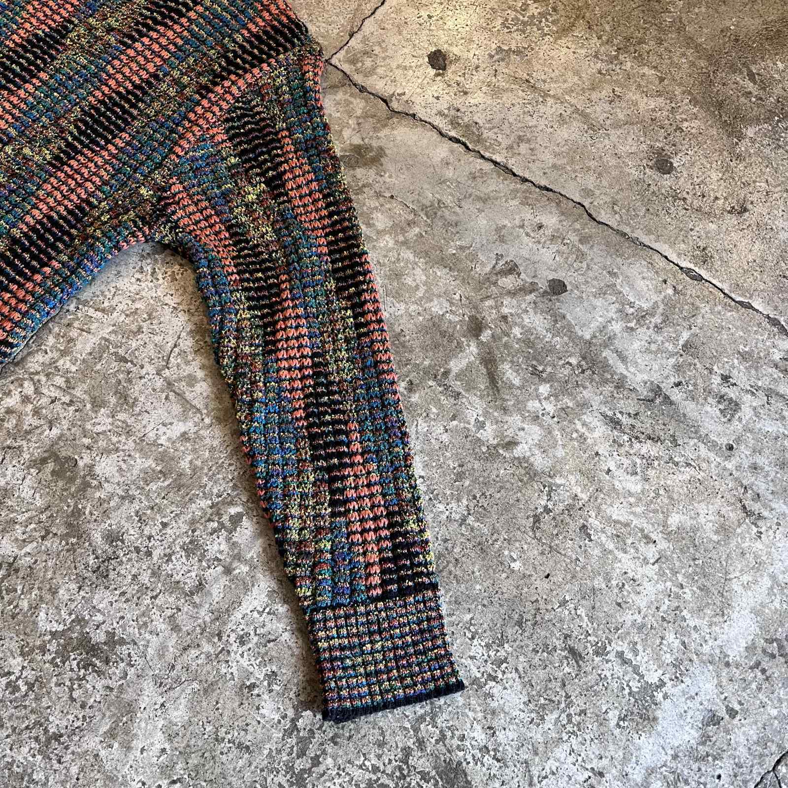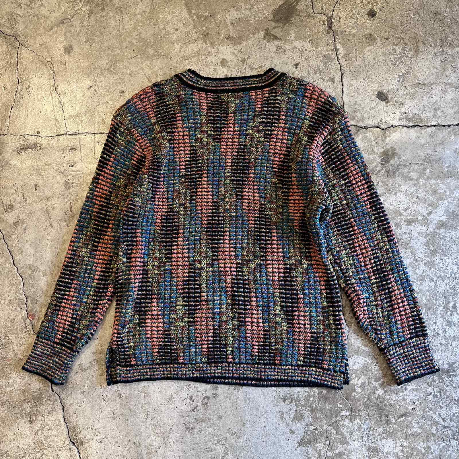 MIX COLOR ART ALL OVER PATTERN RIB KNIT L/S TOPS / Ladies M~L(L)