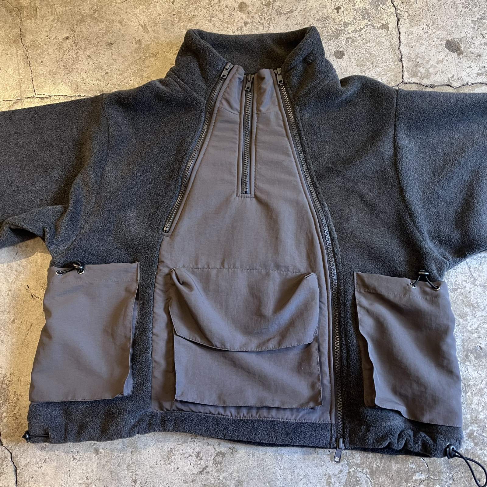【WONDERGROUND】NYLON POCKET SWITCHED ZIP UP FLEECE / GREY / OS