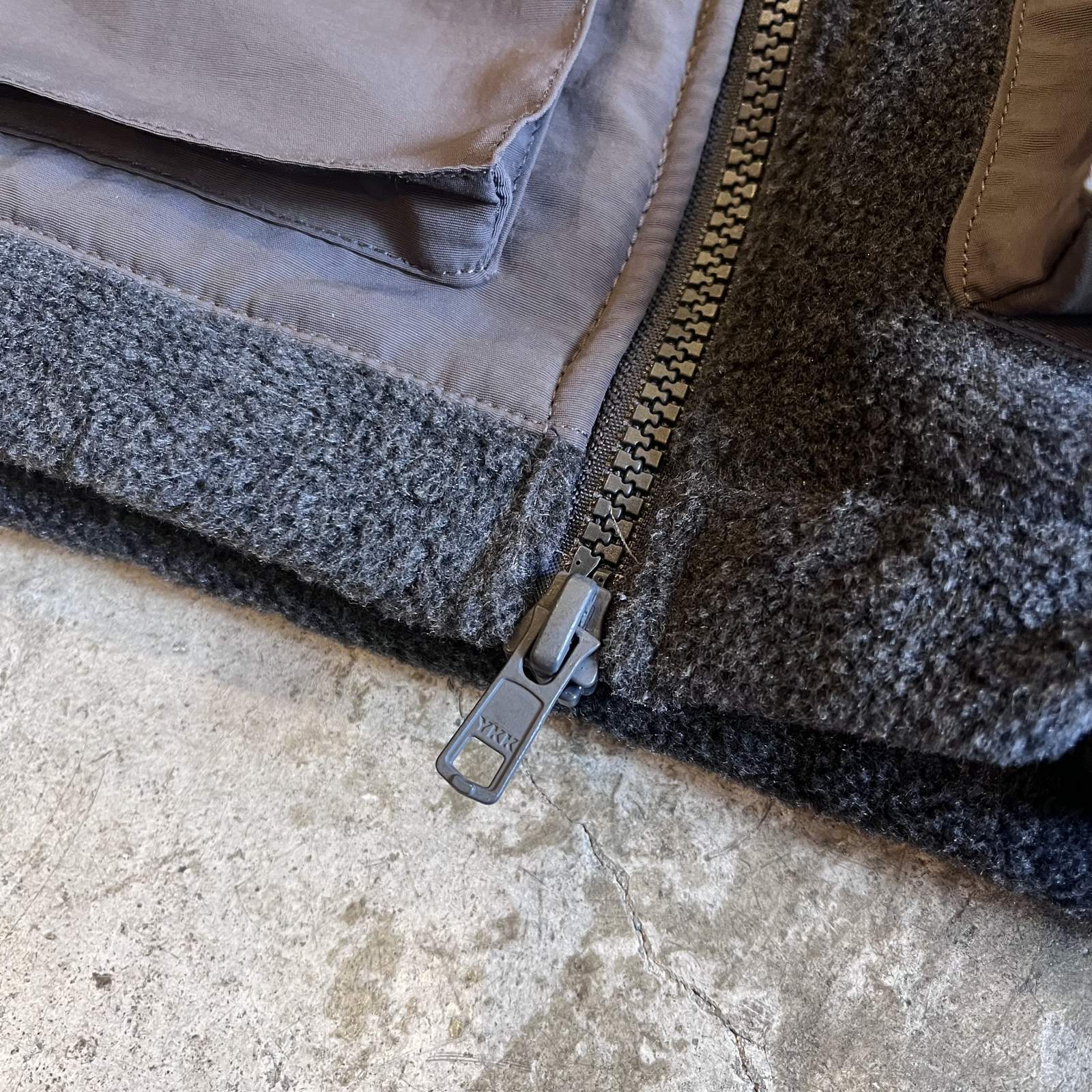 【WONDERGROUND】NYLON POCKET SWITCHED ZIP UP FLEECE / GREY フロントや袖にナイロン生地のポケットが施された、フリーストップス。 軽くて温か…