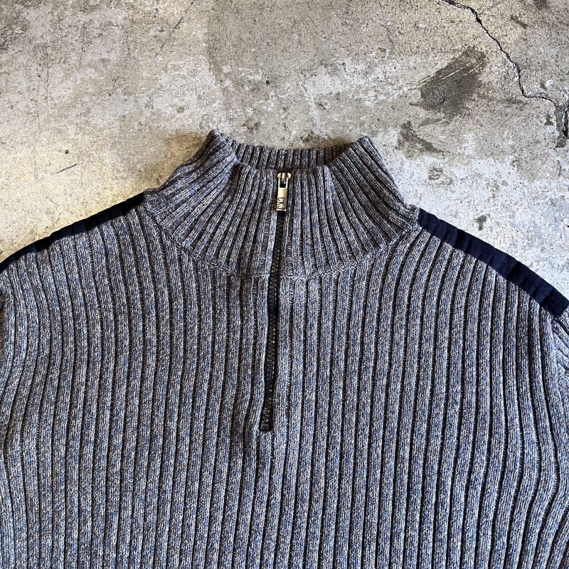 - > 【Calvin Klein】MIX COLOR MARBLING PATTERN HALF ZIP RIB COTTON KNIT L/S TOPS / Ladies M(S)