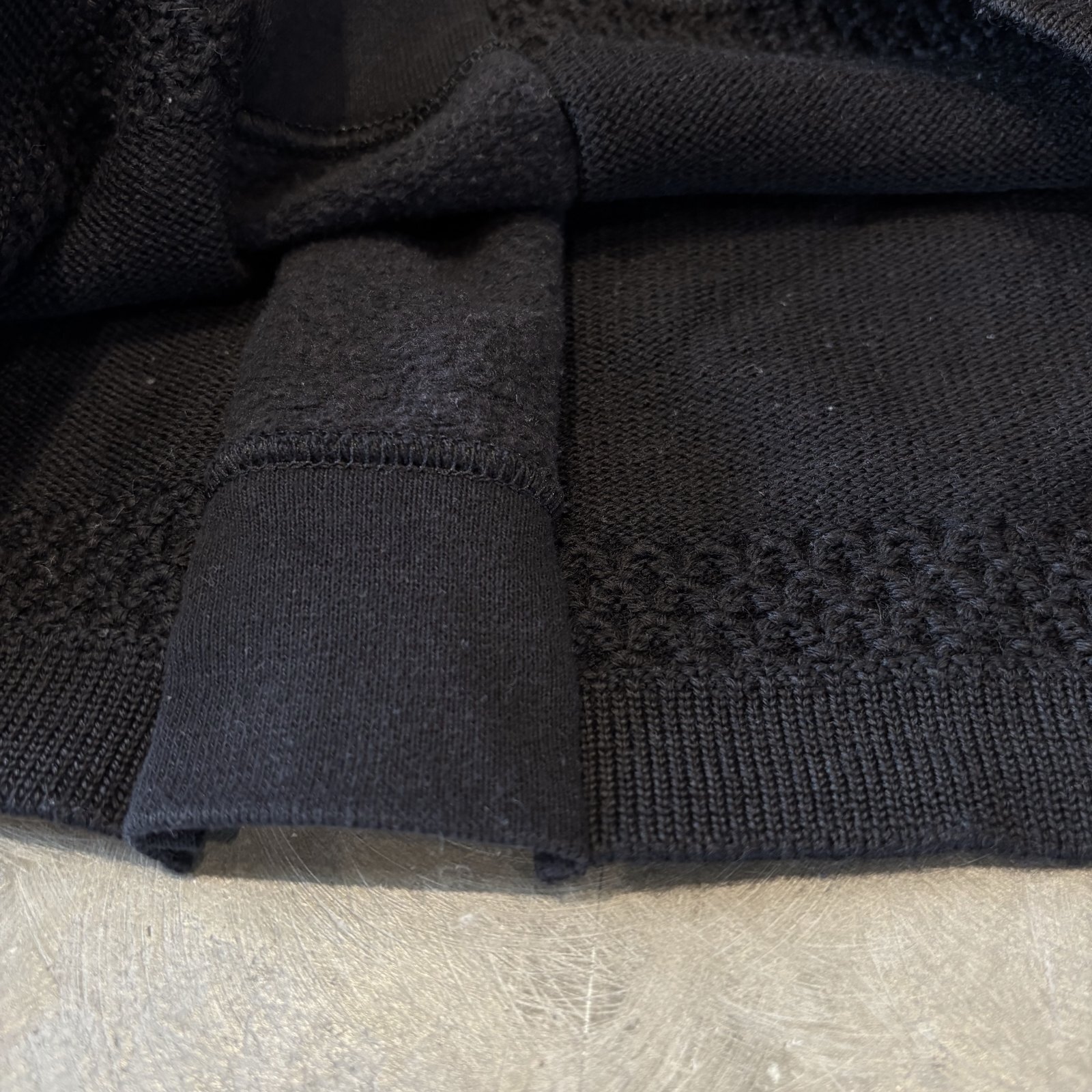 デザイナーのインスピレーションにより解体・再構築された"UNITED" SPORTY TWO FACE SWEAT PARKA。 総柄のニットセーターとNIKEのスウェットパーカーをドッキングした1…