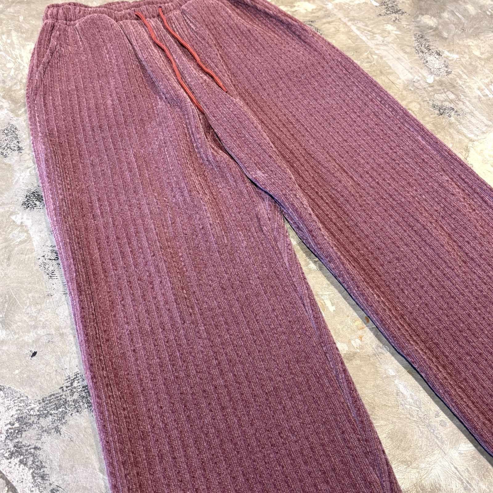 【WONDERGROUND】RIB WIDE SILHOUETTE VELOUR PANTS / PINK / OS