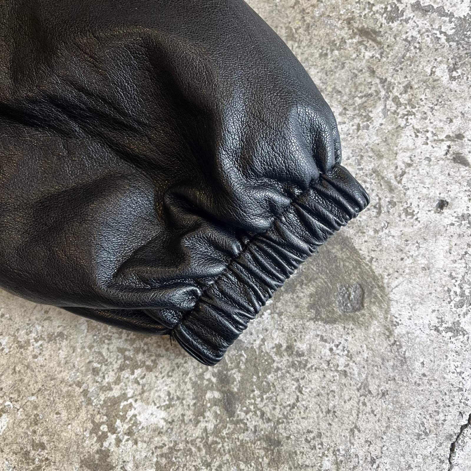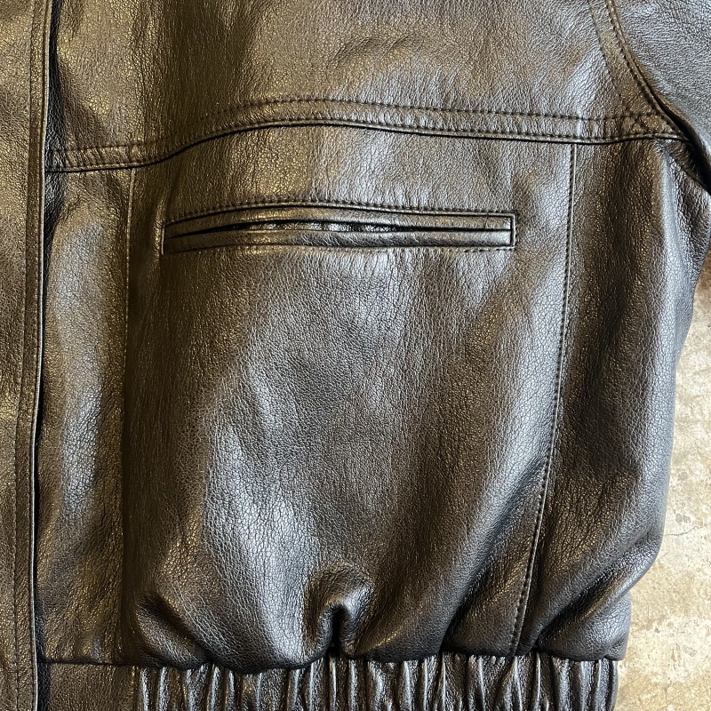少し艶のあるボディが上品さを醸し出したレザーデザインジャケット。