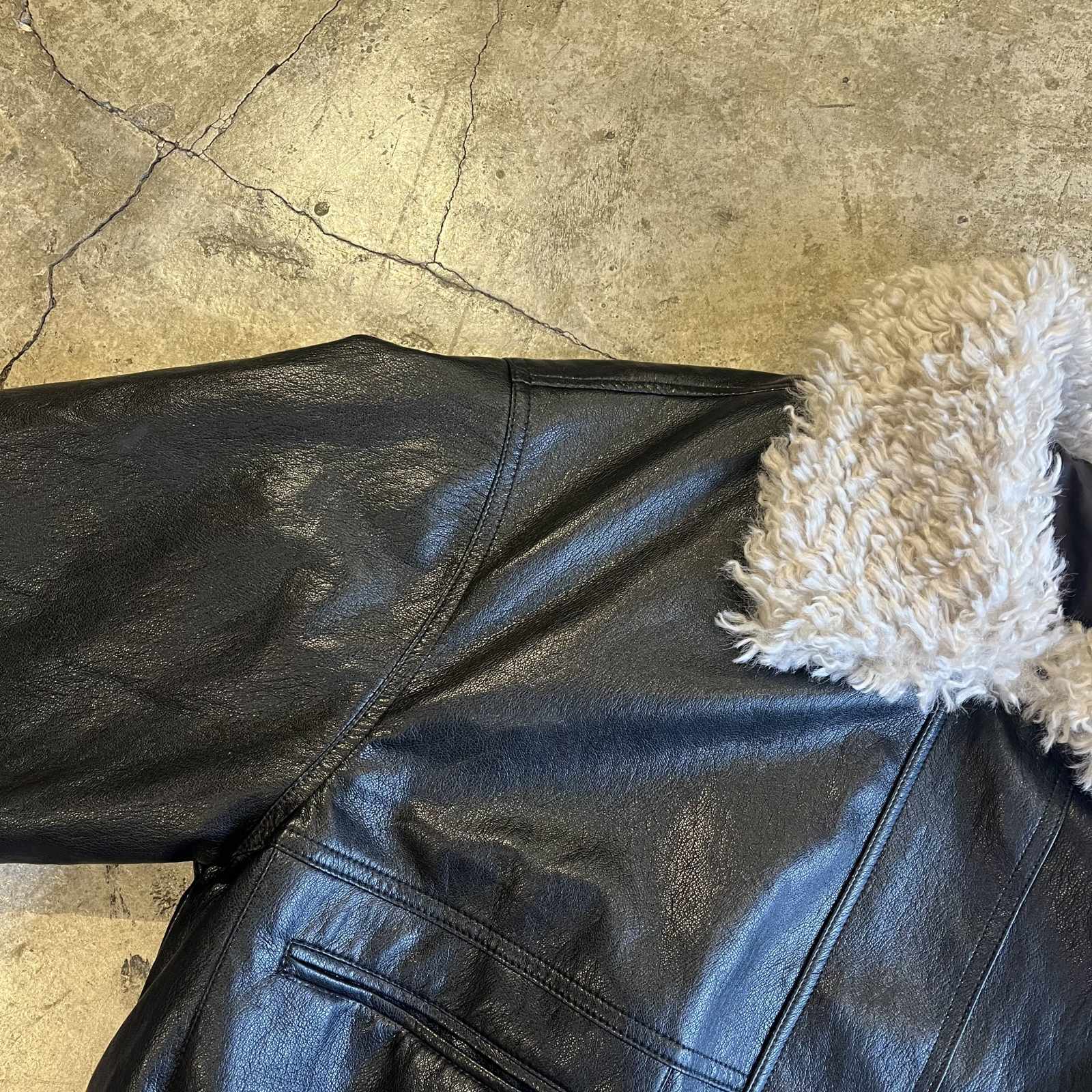 NECK BOA DESIGN FAUX LEATHER ZIP UP JACKET / Ladies L