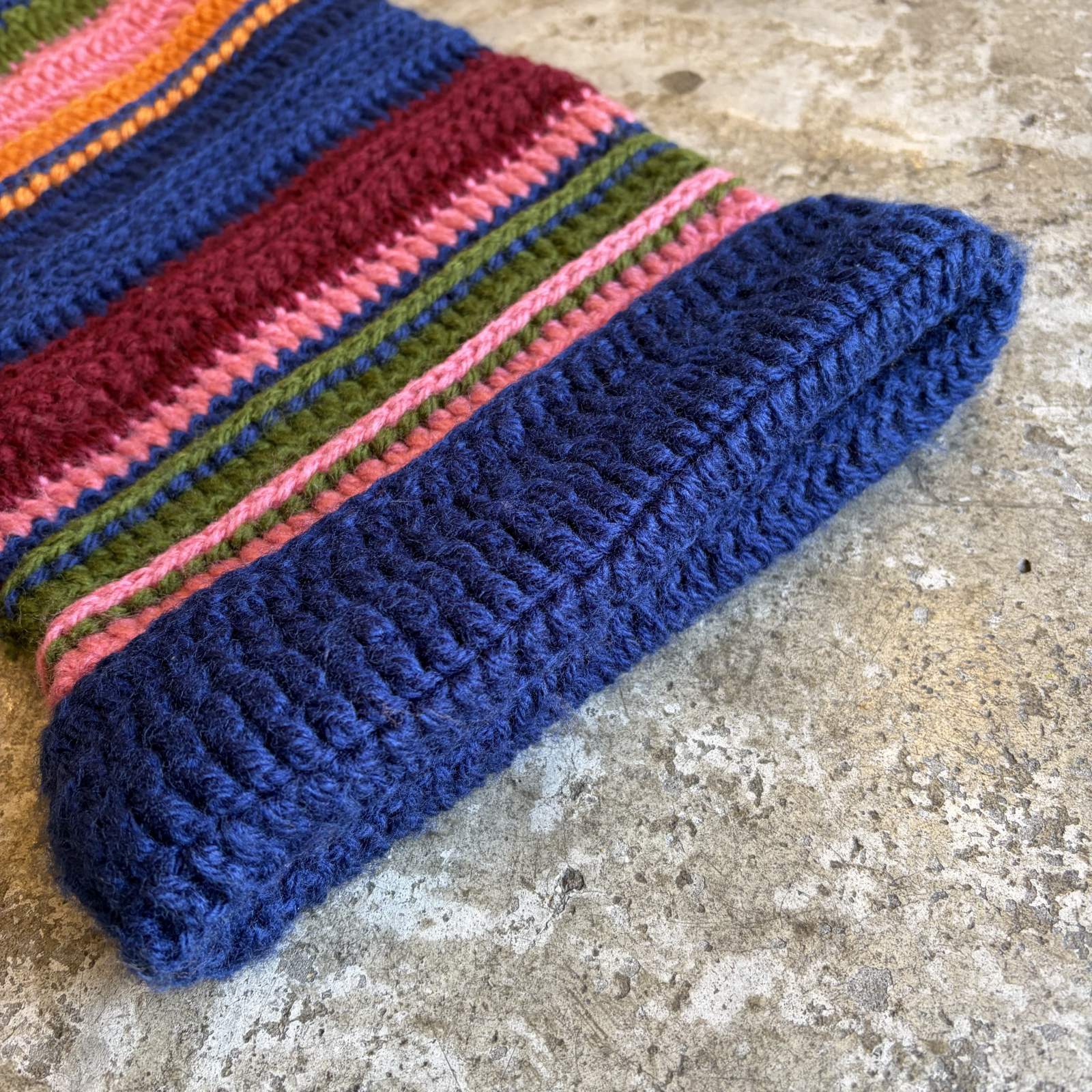 暖かみのある素材感にマルチボーダーが存在感があり、