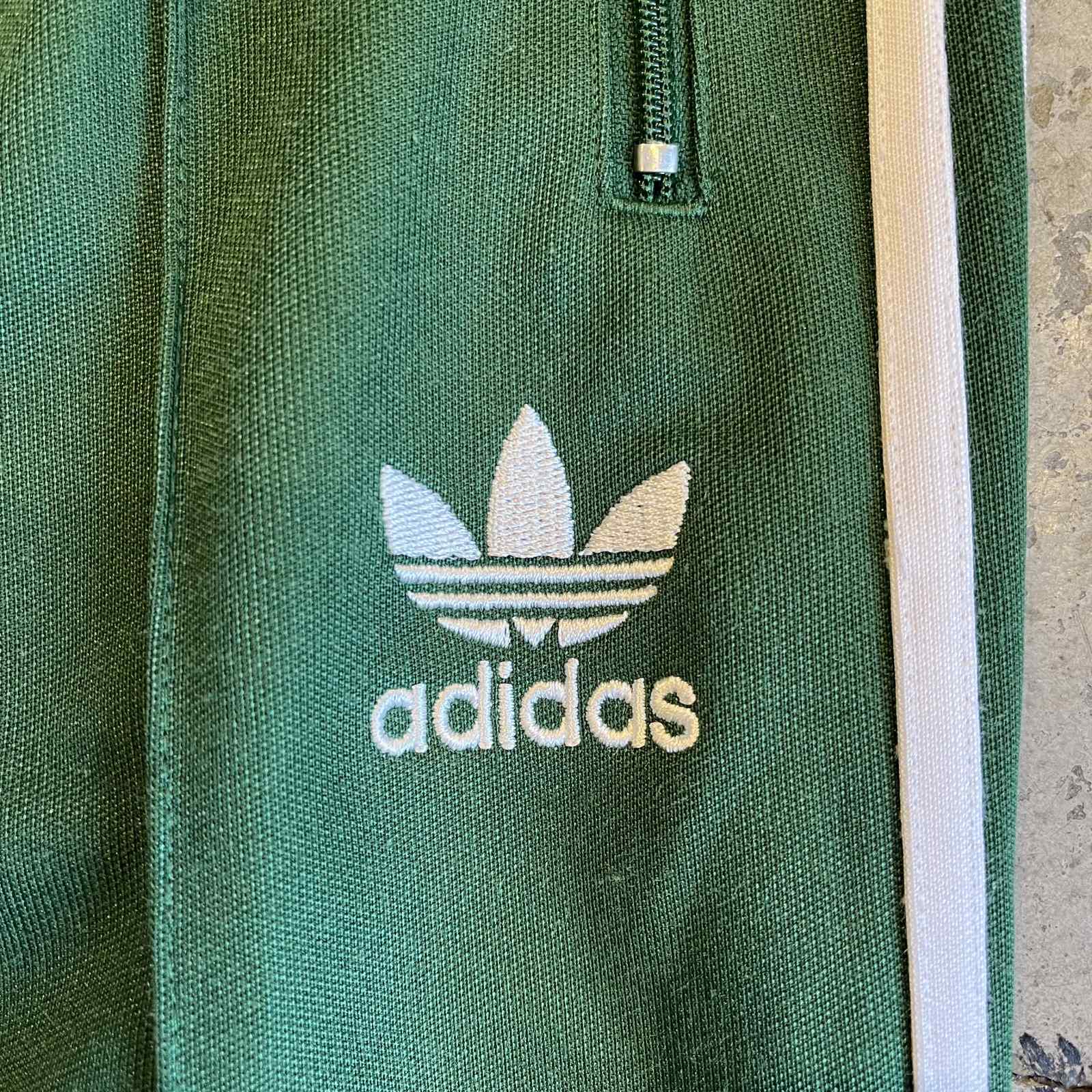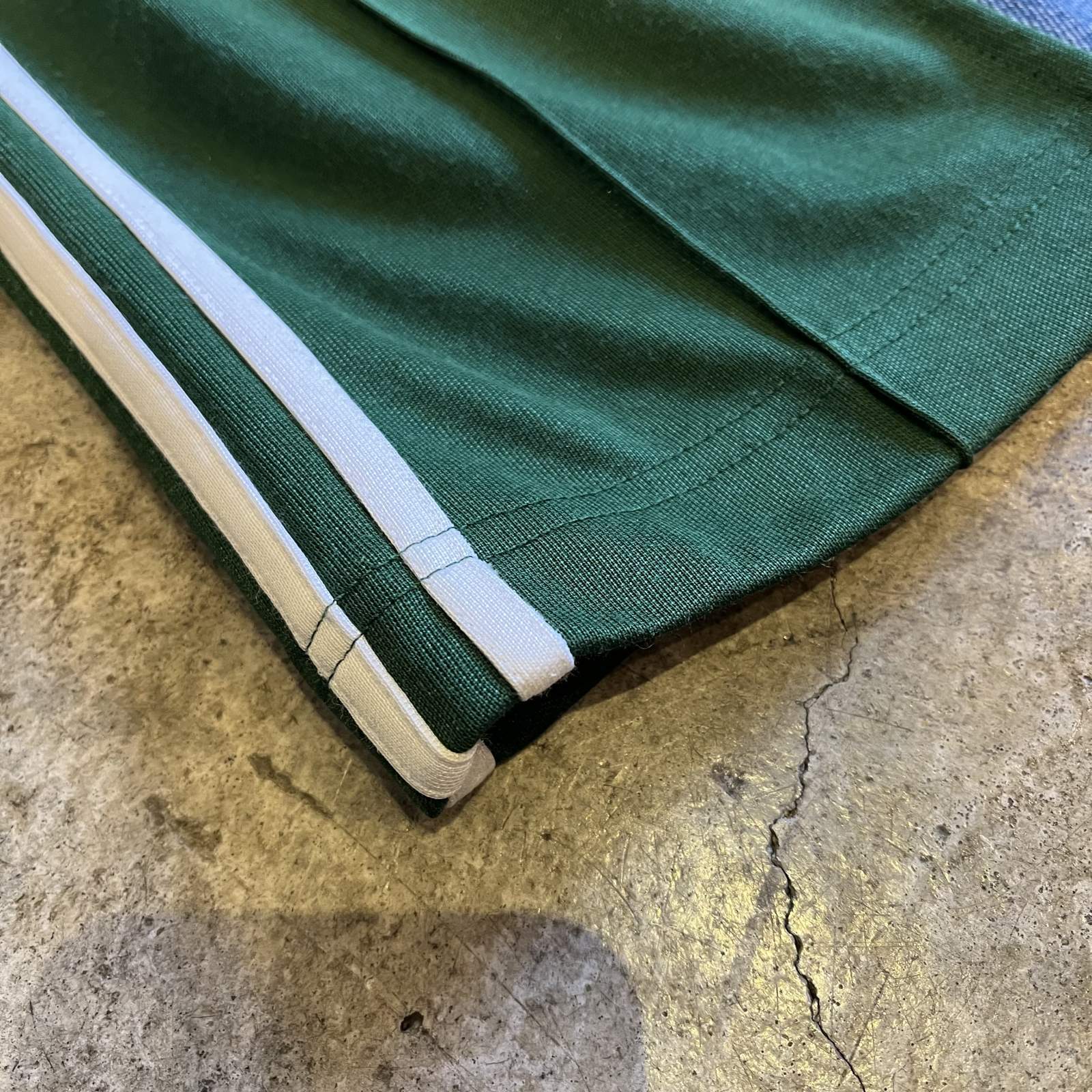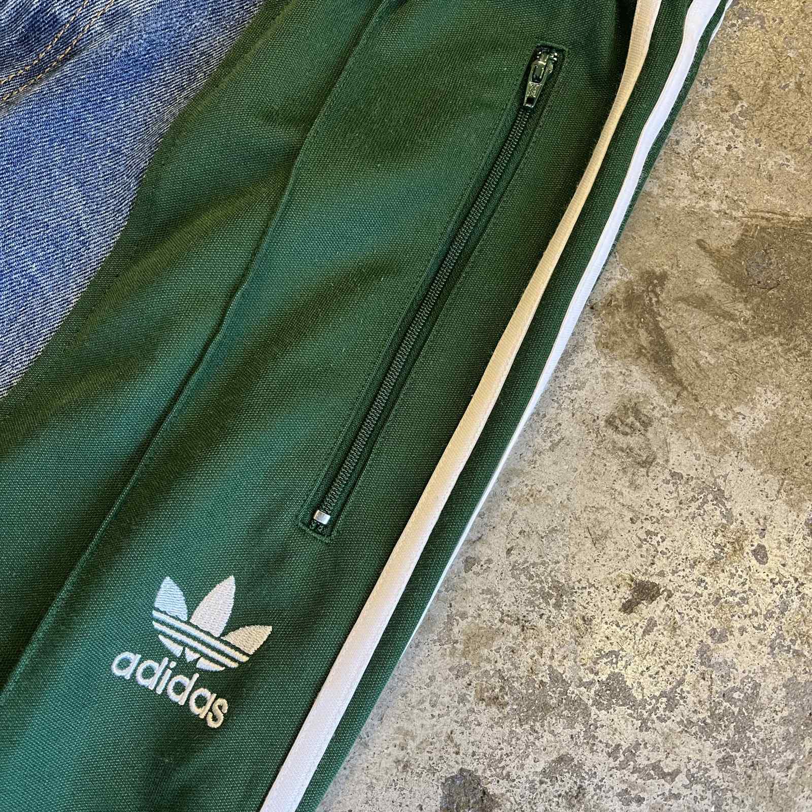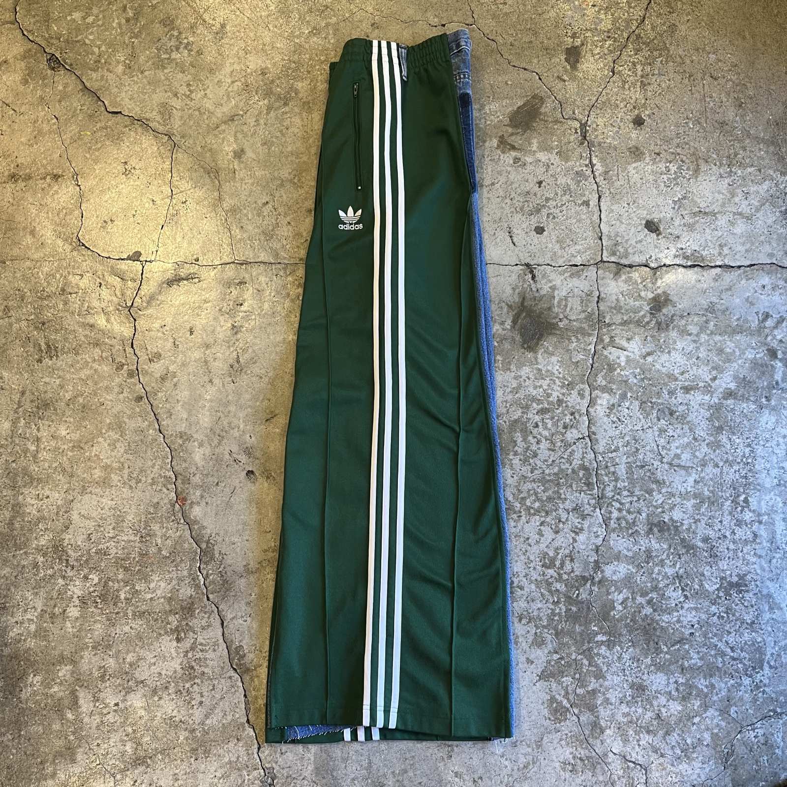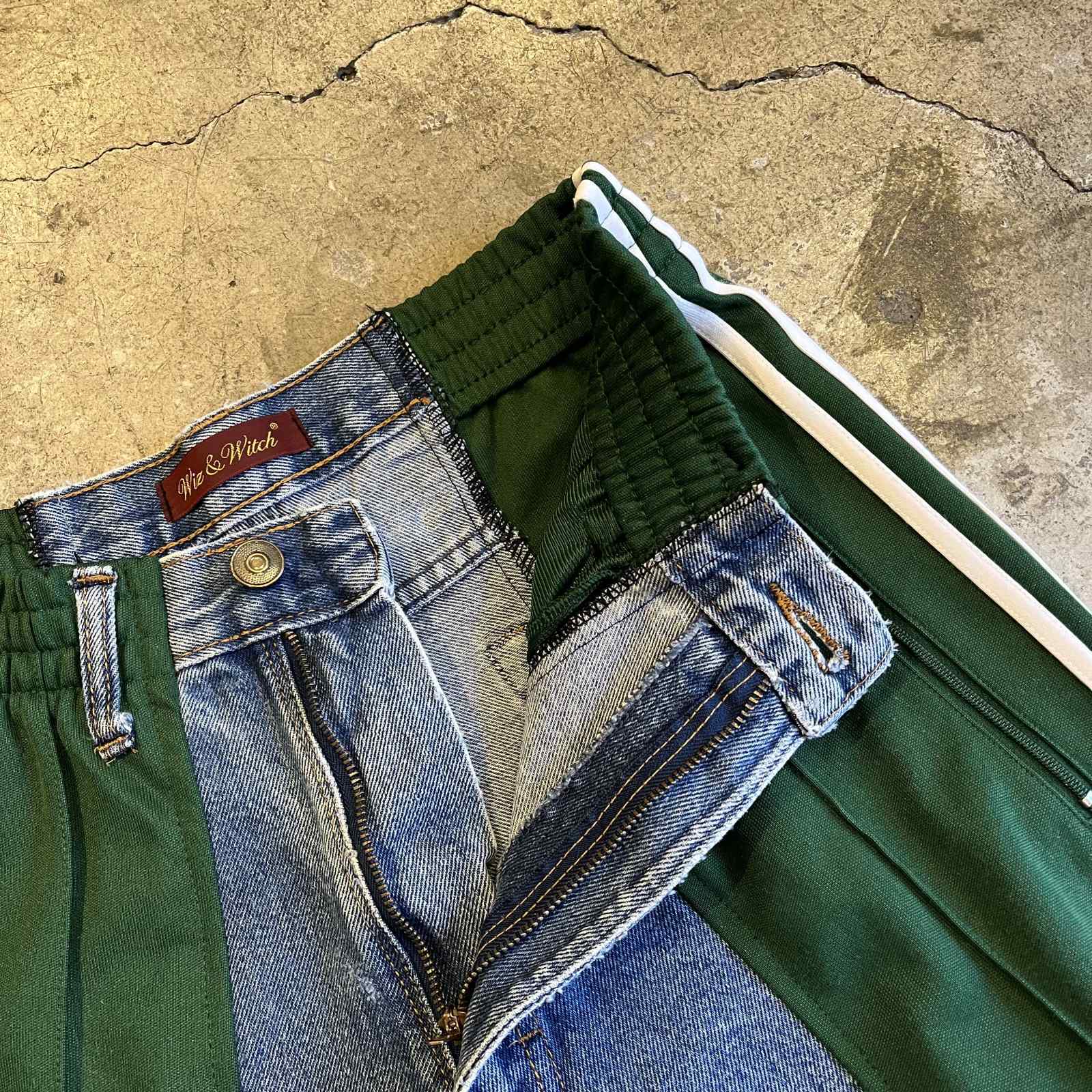 "adidas"のトラックパンツとデニムパンツをドッキングした1本。