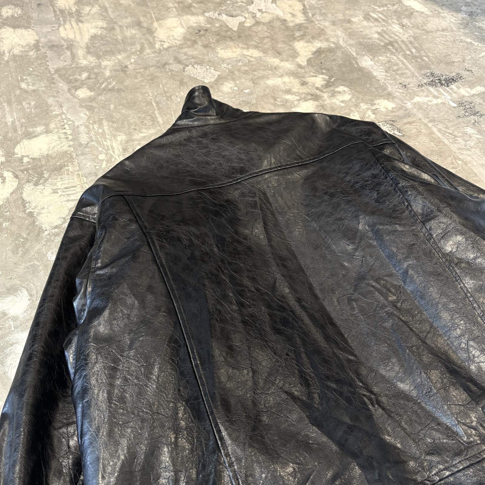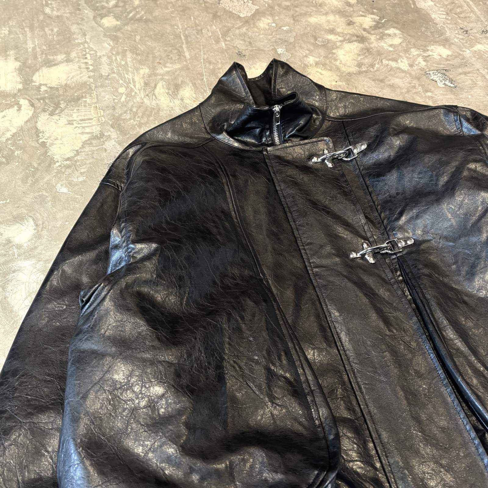FAUX LEATHER HI-NECK FIREMAN JACKET / Mens L