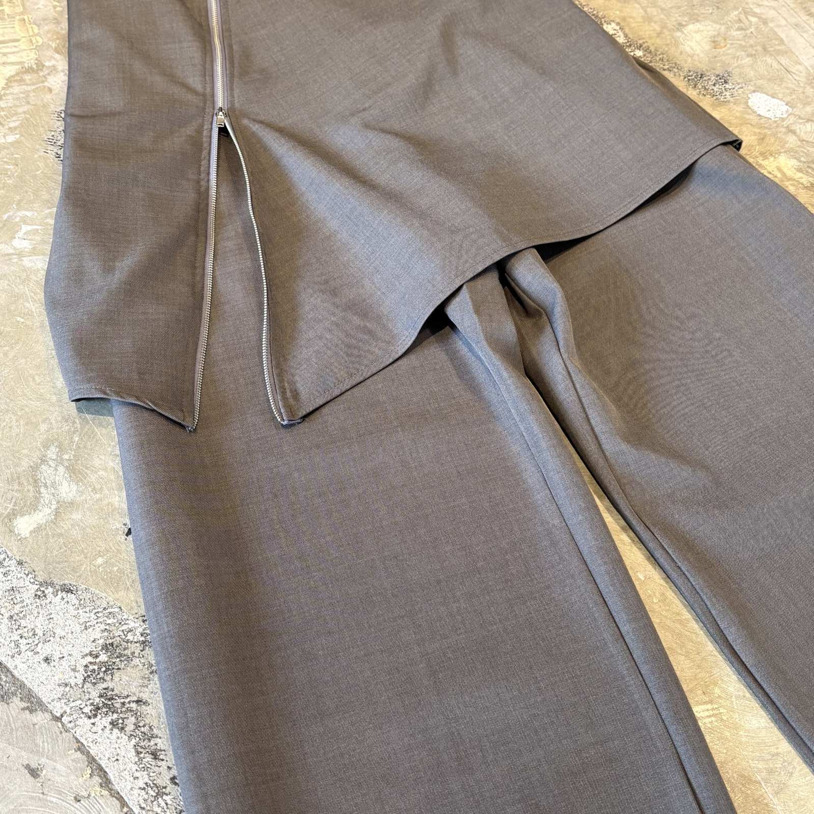 【WONDERGROUND】ZIP SKIRT LAYERED BELTED SLACKS / KHAKI