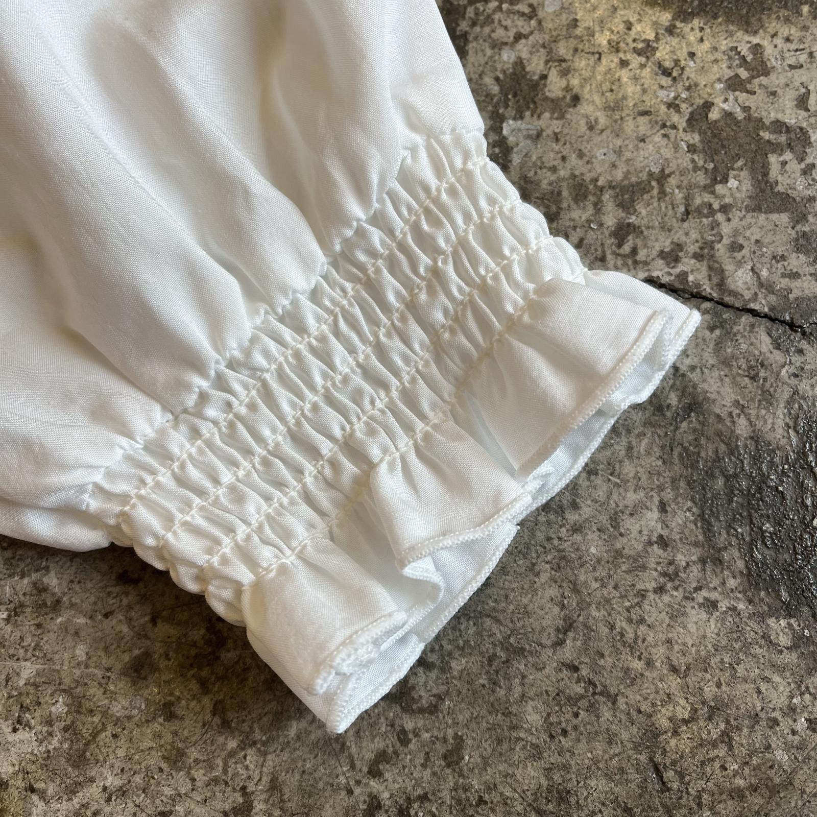ホワイトカラーの爽やかさとフリル、ギャザーのデザインがヴィンテージの雰囲気を纏ったトップス。