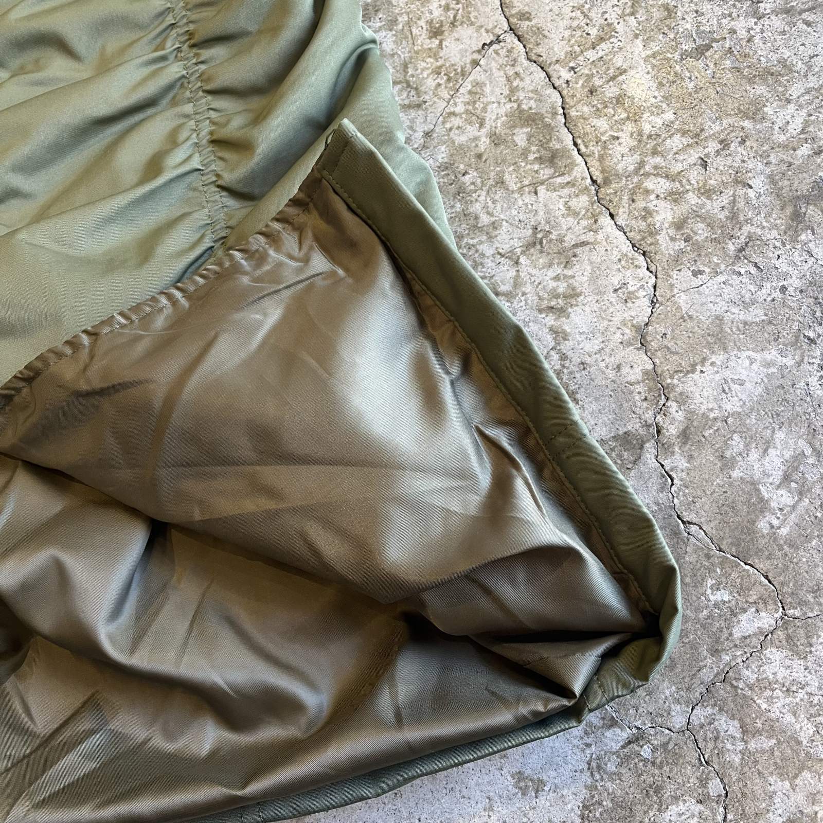 ナイロンの艶感とカーキカラーのバランスが良くミリタリーとシックを融合した佇まい。