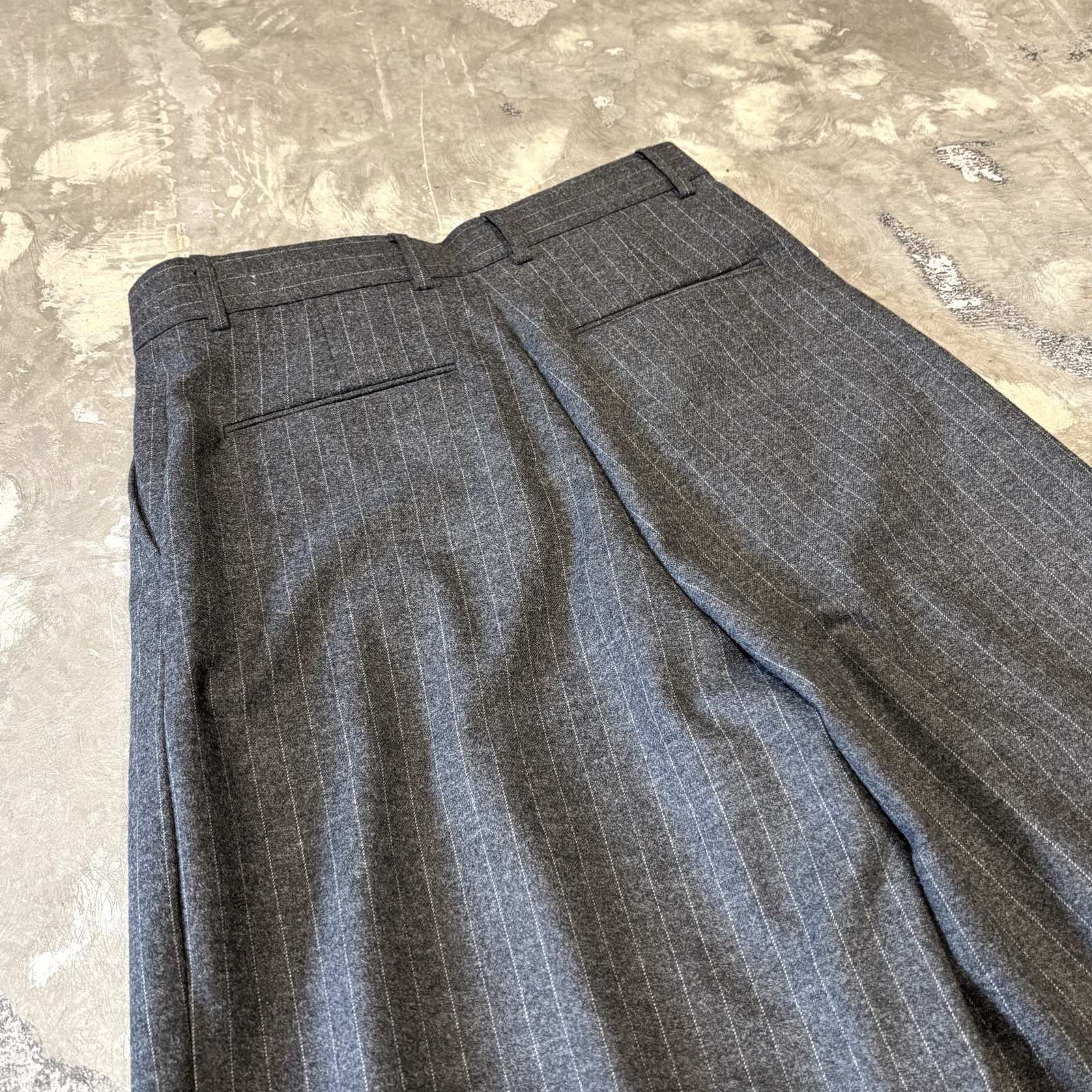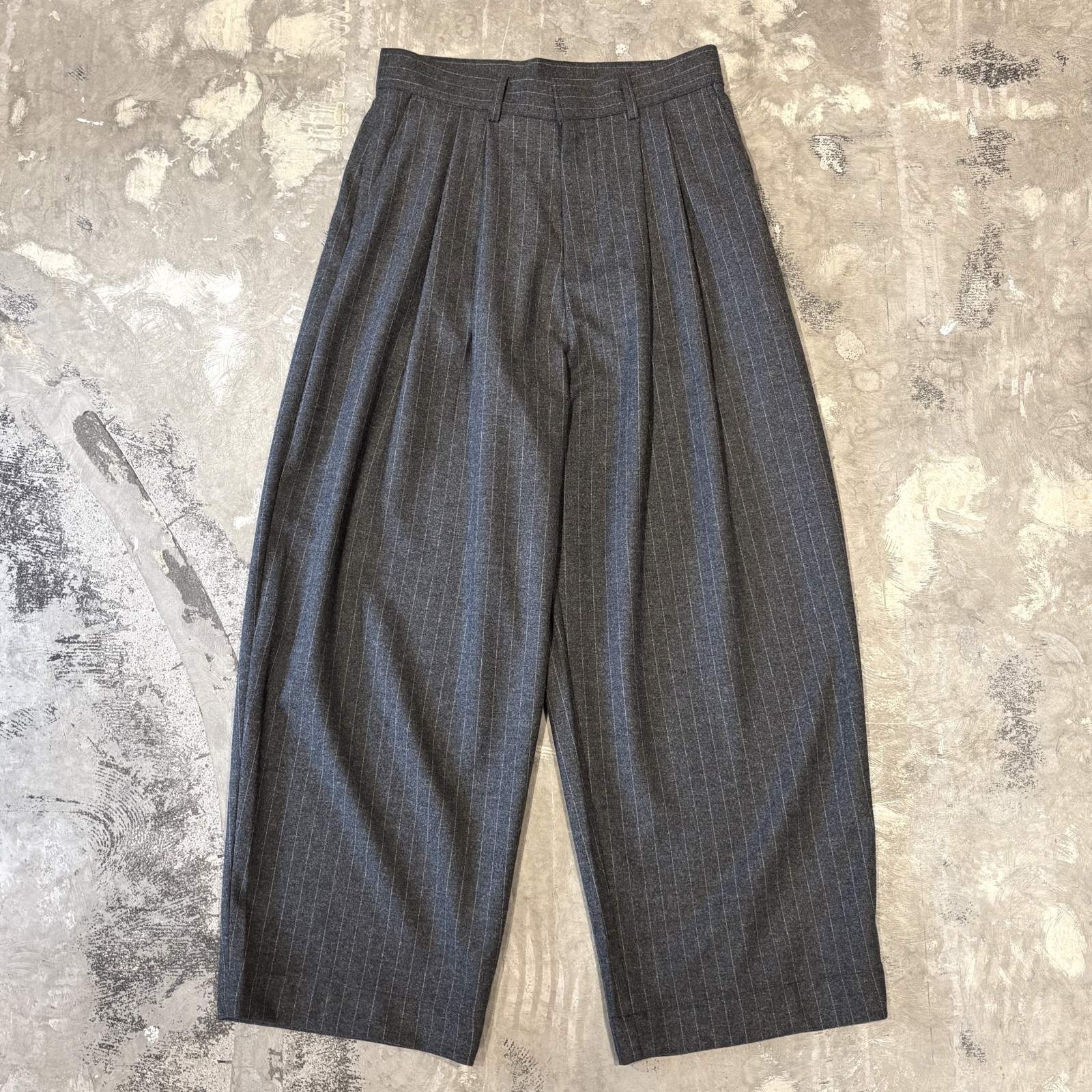 【WONDERGROUND】STRIPE PATTERN WIDE WOOL SLACKS / GREY