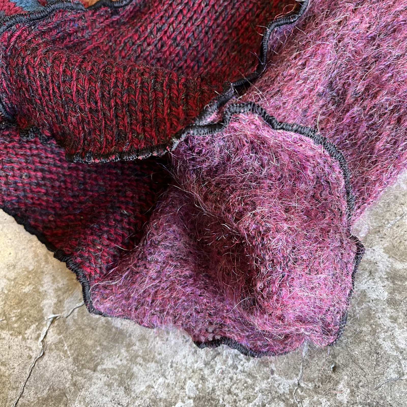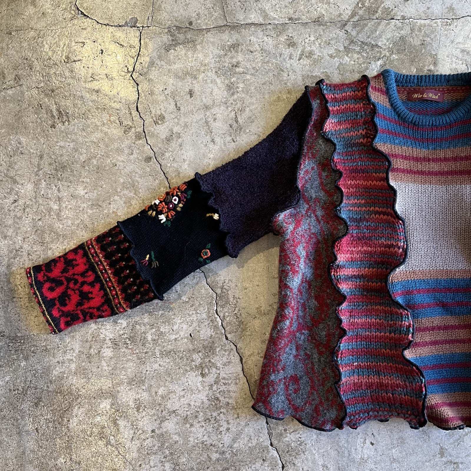 デザイナーのインスピレーションによって解体、再構築されたアイテム。 あえてデザインとしてステッチを表に出した"OUT STITCH" DECO KNIT。 ブラックベースの様々なニットを仕様し唯一…