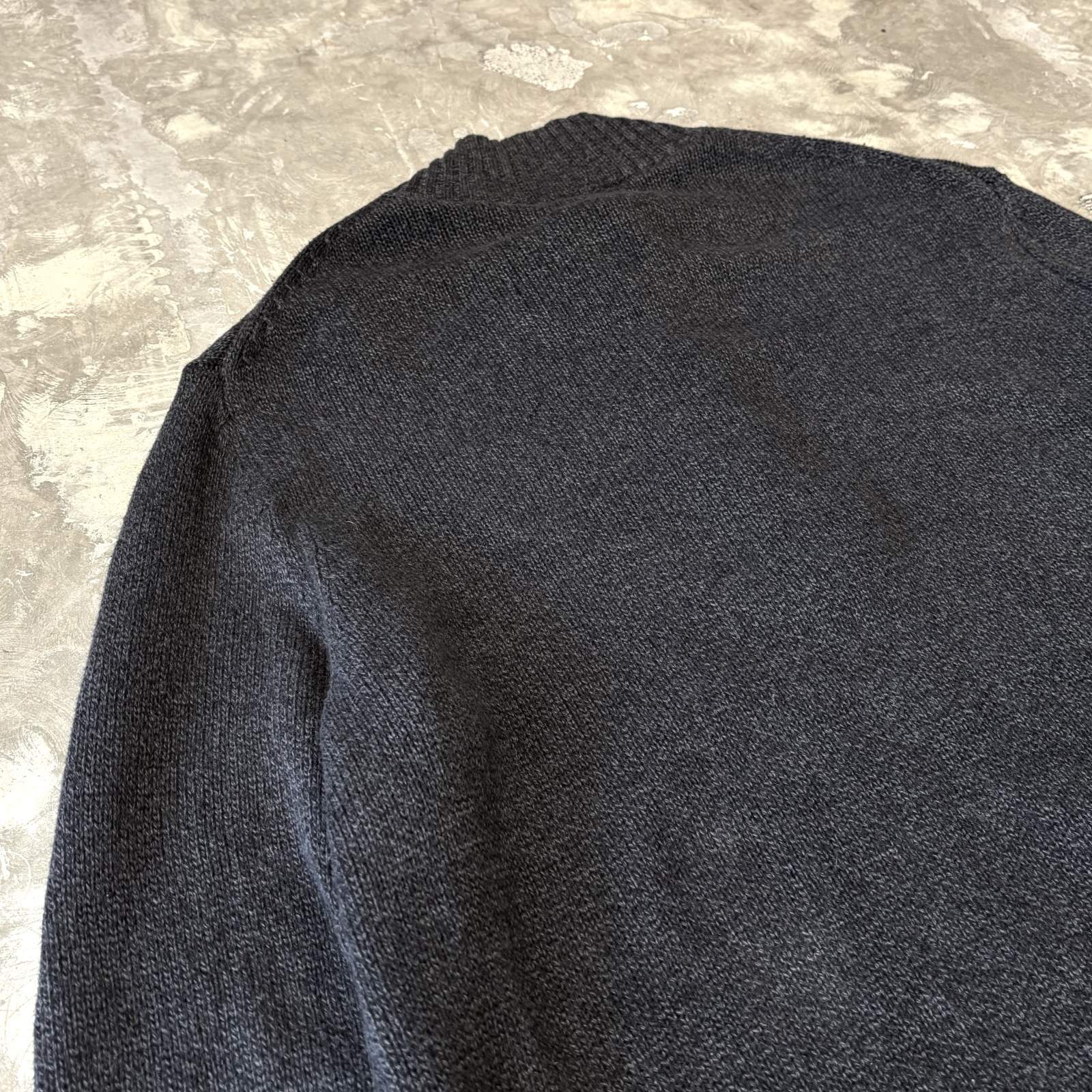全体がチャコールのワントーンに統一された、"CALVIN KLEIN"のニットセーター。