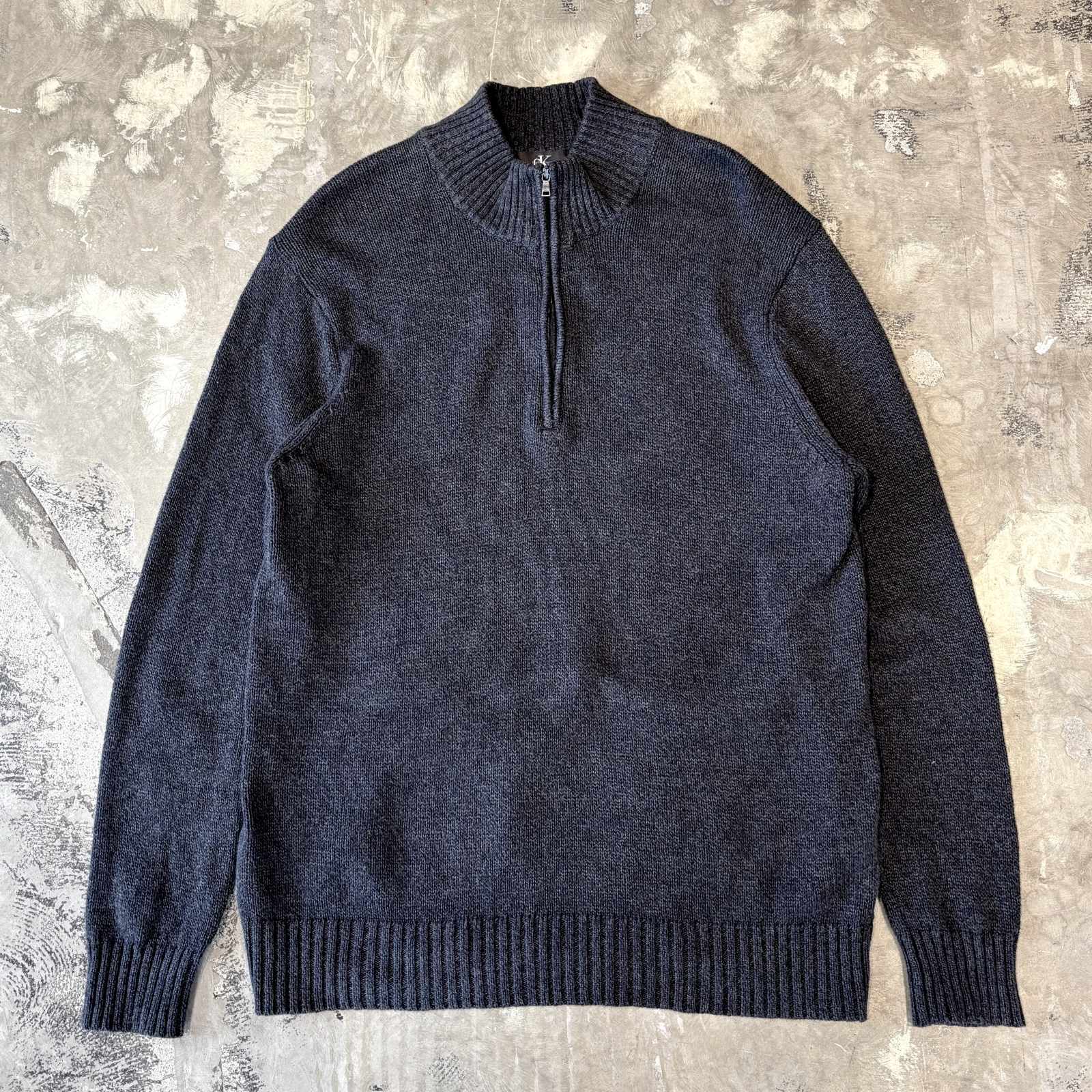 【CALVIN KLEIN】CHARCOAL COLOR HALF ZIP KNIT SWEATER / Mens L