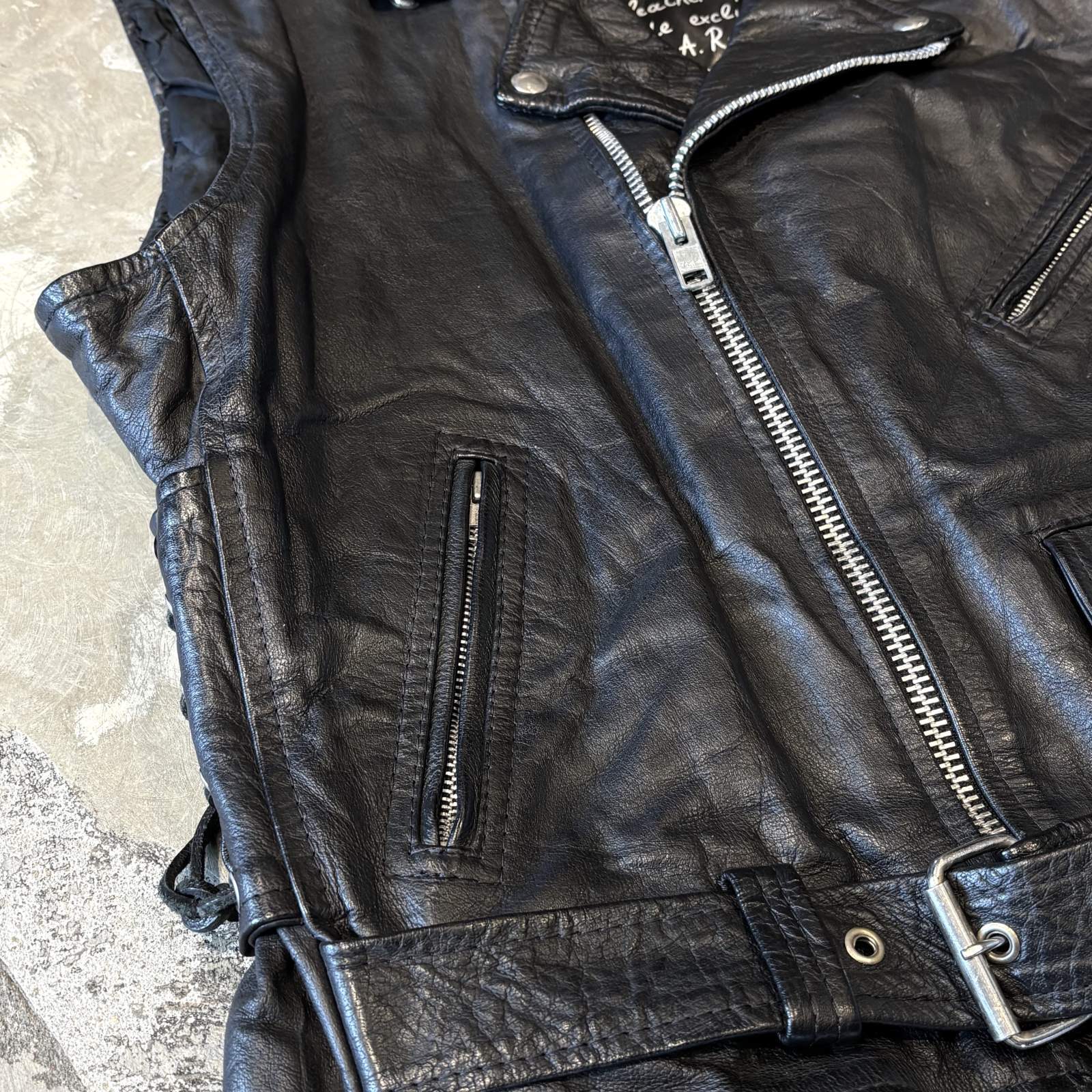 REAL LEATHER SIDE LACE UP DOUBLE RIDERS VEST / Mens L