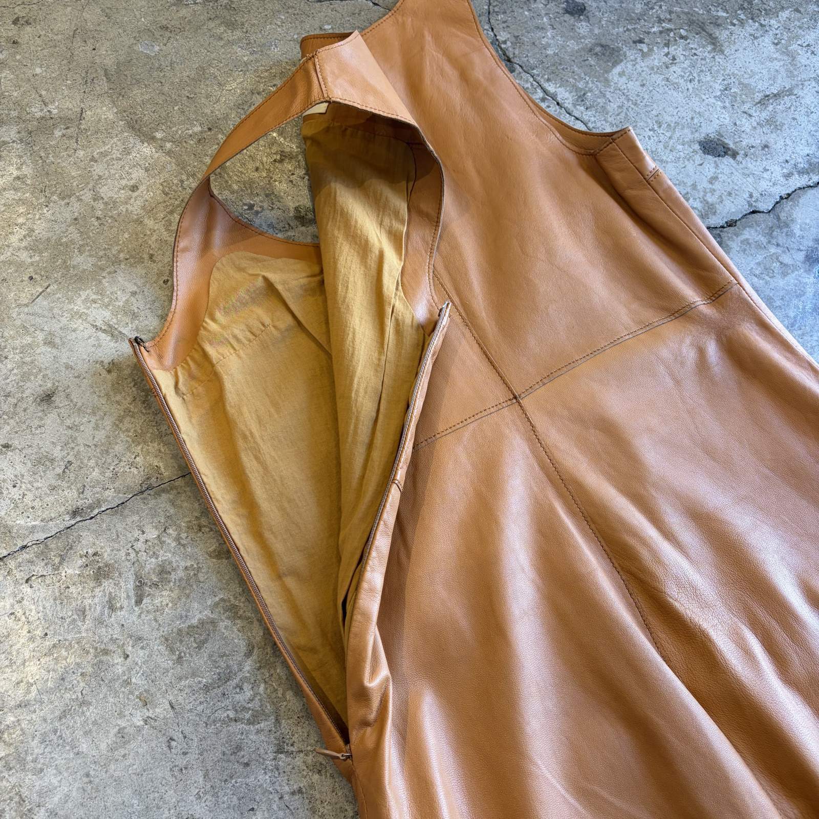 LAMB SKIN LEATHER DESIGN N/S ONE-PIECE / Ladies S~M / MADE IN USA