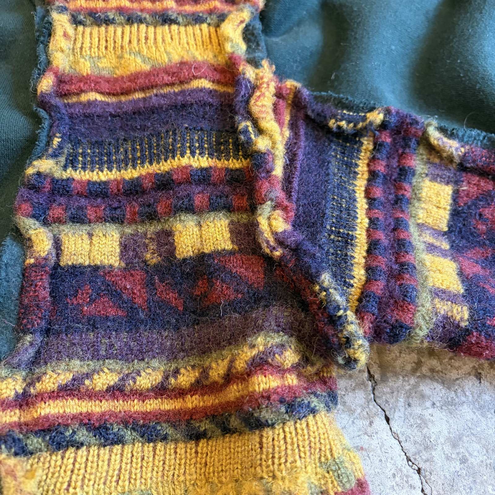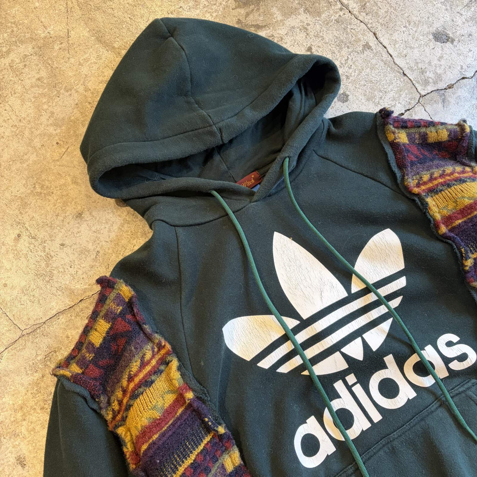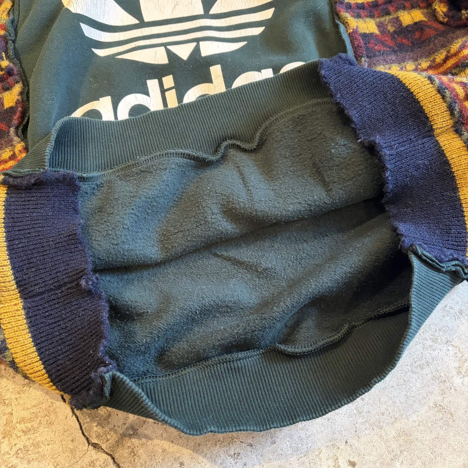 adidasのスポーティスウェットとデザインニットをドッキングした1枚。